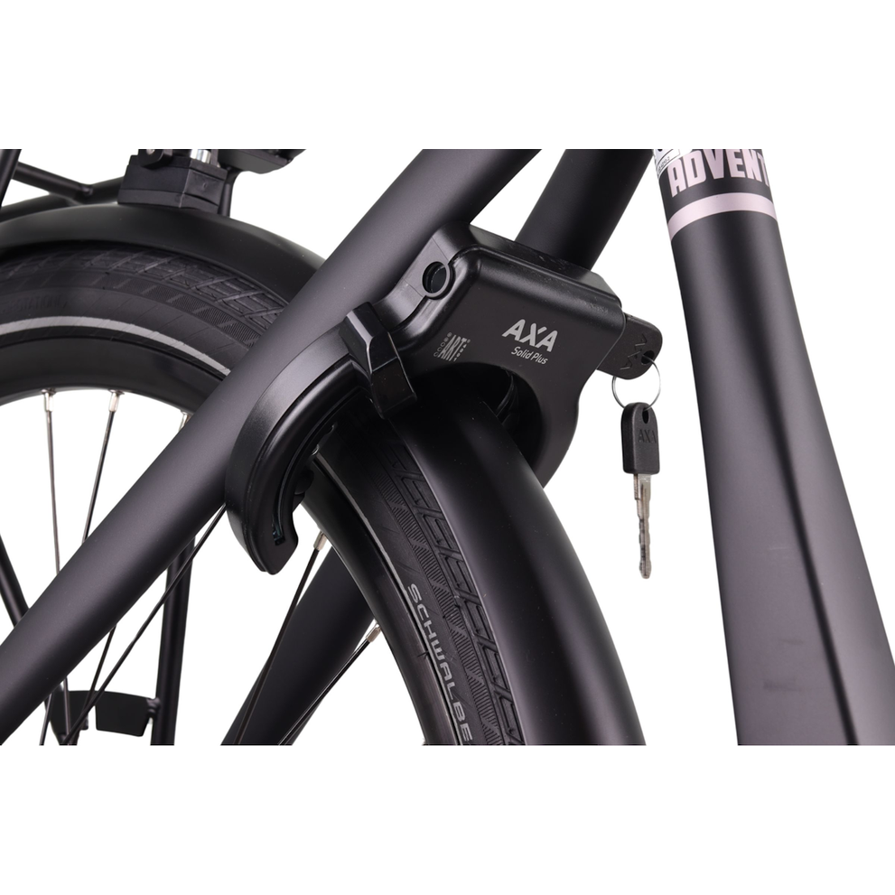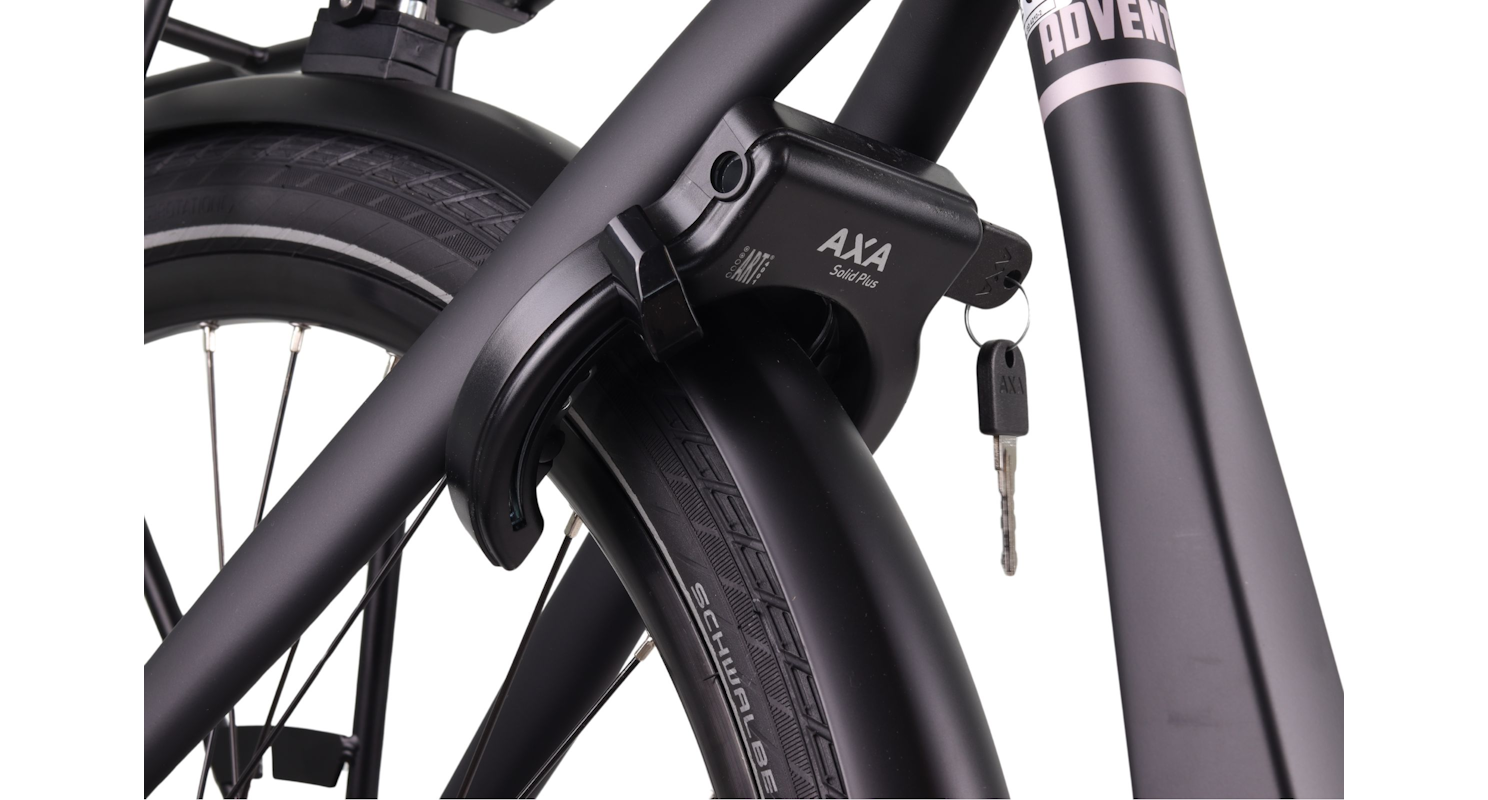 De verende voorvork en verstelbare stuurpen zorgen voor optimaal rijcomfort. Dankzij de Shimano Nexus 7 versnellingen en hydraulische schijfremmen heb je altijd controle, of je nu in de stad rijdt of buitenaf. De LED verlichting op accu, reflectie op de banden en het stevige Axa Solid Plus slot maken deze fiets compleet veilig.