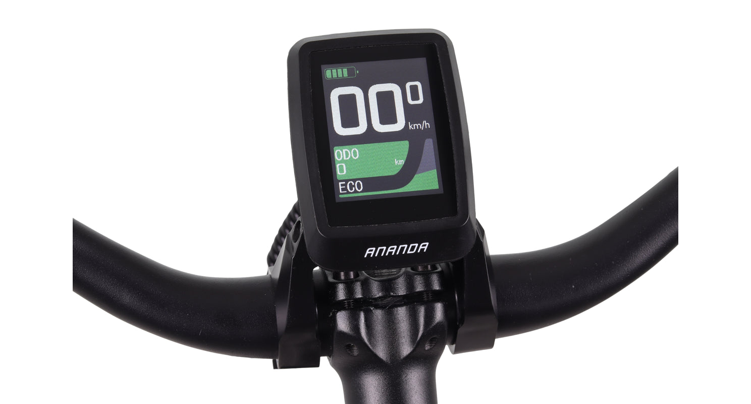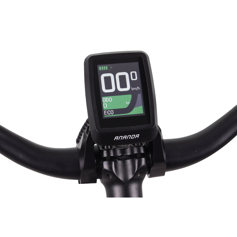 Dankzij de Ananda voorwielmotor met 40Nm koppel ervaar je prettige ondersteuning bij elke trap. De motor voelt natuurlijk aan en helpt je soepel op gang, ook bij wind tegen. De ondersteuning wordt aangestuurd via het overzichtelijke Ananda D-16 display, waarmee je eenvoudig de juiste stand kiest.