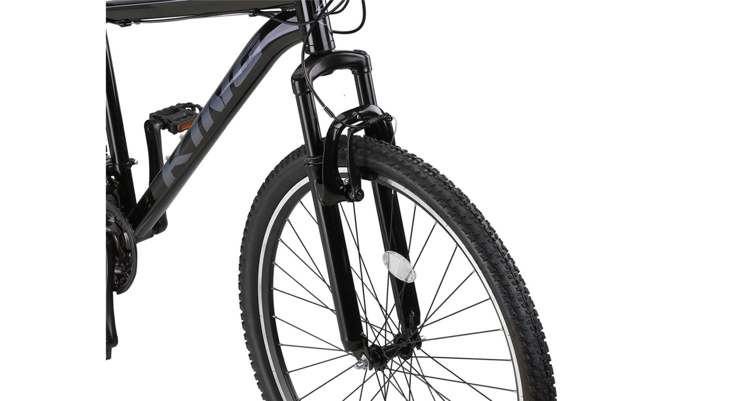 De Altec King mountainbike is een fiets die verkrijgbaar is in verschillende inch maten, remmen en kleuren. Het frame van de fiets is gemaakt van Aluminium en biedt voldoende stevigheid om op terrein te rijden. De fiets is voorzien van dubbelwandige aluminium velgen, die zorgen voor extra stevigheid en duurzaamheid tijdens het rijden. Daarnaast heeft de fiets een Shimano 21 speed versnellingssysteem, waardoor je op elk terrein kunt fietsen en snelheden kunt aanpassen naar eigen wens. De remmen zijn V-brakes waardoor je snel en veilig kunt remmen. Een ander kenmerk van de Altec King mountainbike is de verende voorvork, die ervoor zorgt dat je comfortabel kunt fietsen. De fiets heeft ook een zijstandaard, waardoor je de fiets gemakkelijk kunt parkeren zonder dat deze omvalt.