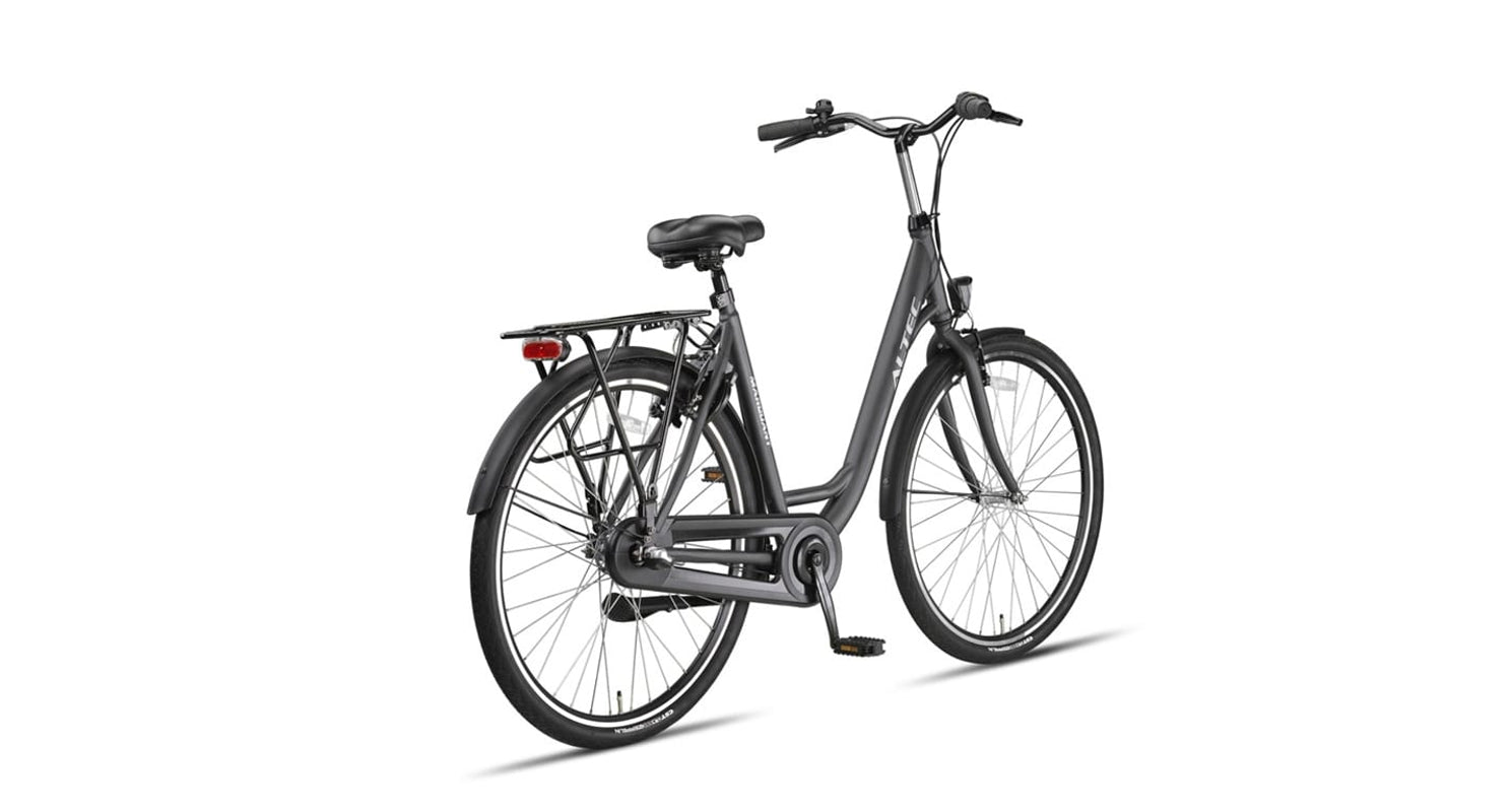 De Altec Marquant Damesfiets is ook voorzien van handige extra's zoals een bagagedrager achter, ideaal voor het vervoeren van tassen of boodschappen. Daarnaast beschikt de fiets over een bel, zijstandaard en een geïntegreerd ringslot voor extra beveiliging tegen diefstal.