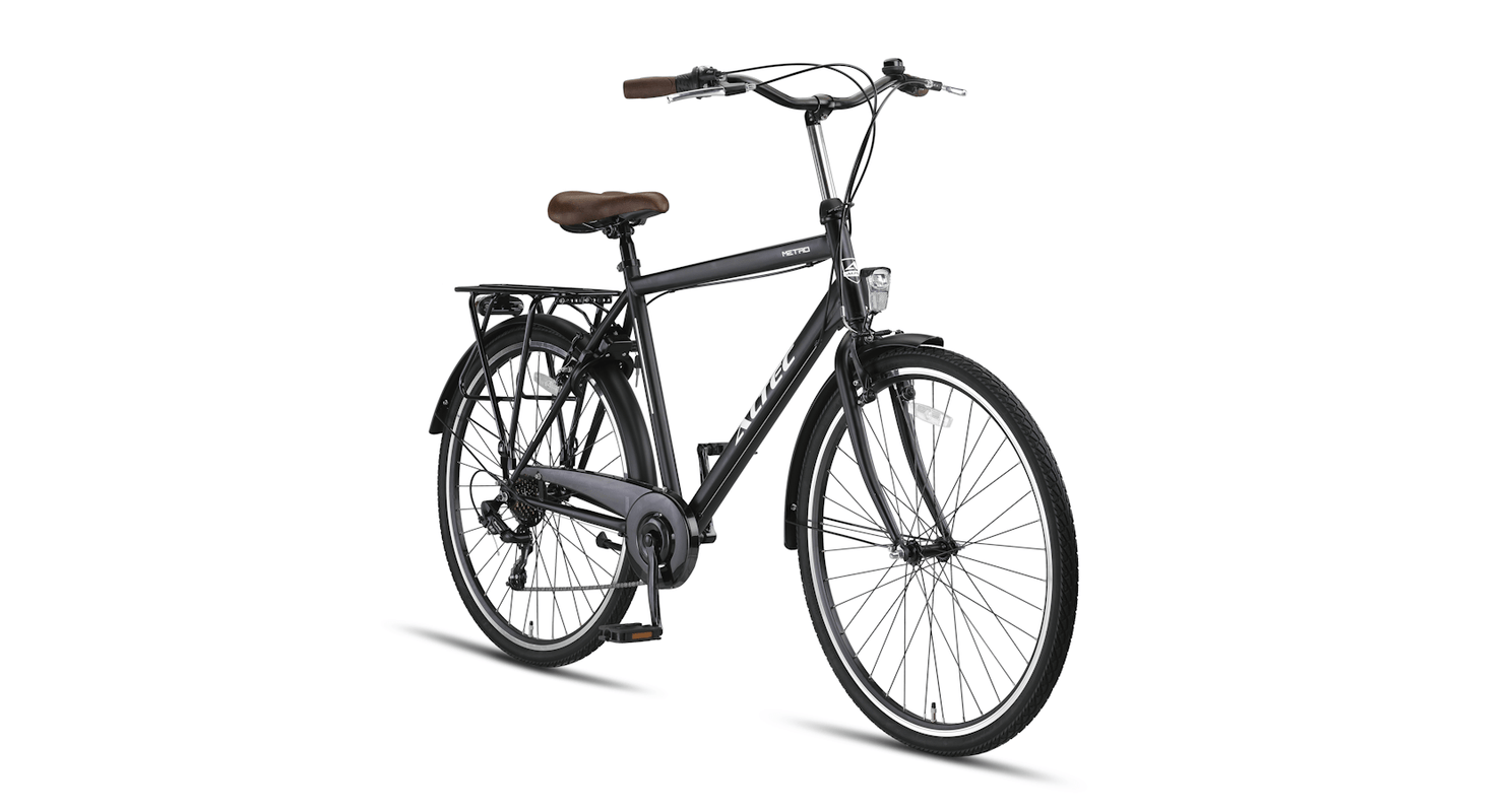 De Altec Metro 7 speed is voorzien van LED batterijverlichting, een stevig ringslot en een handige zijstandaard. De dubbelwandige aluminium velgen zorgen voor extra stabiliteit en duurzaamheid, perfect voor dagelijks gebruik in de stad.