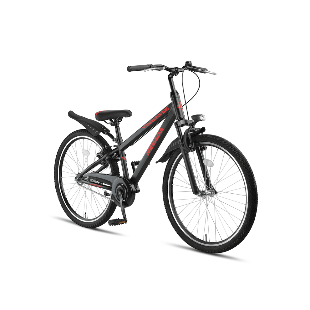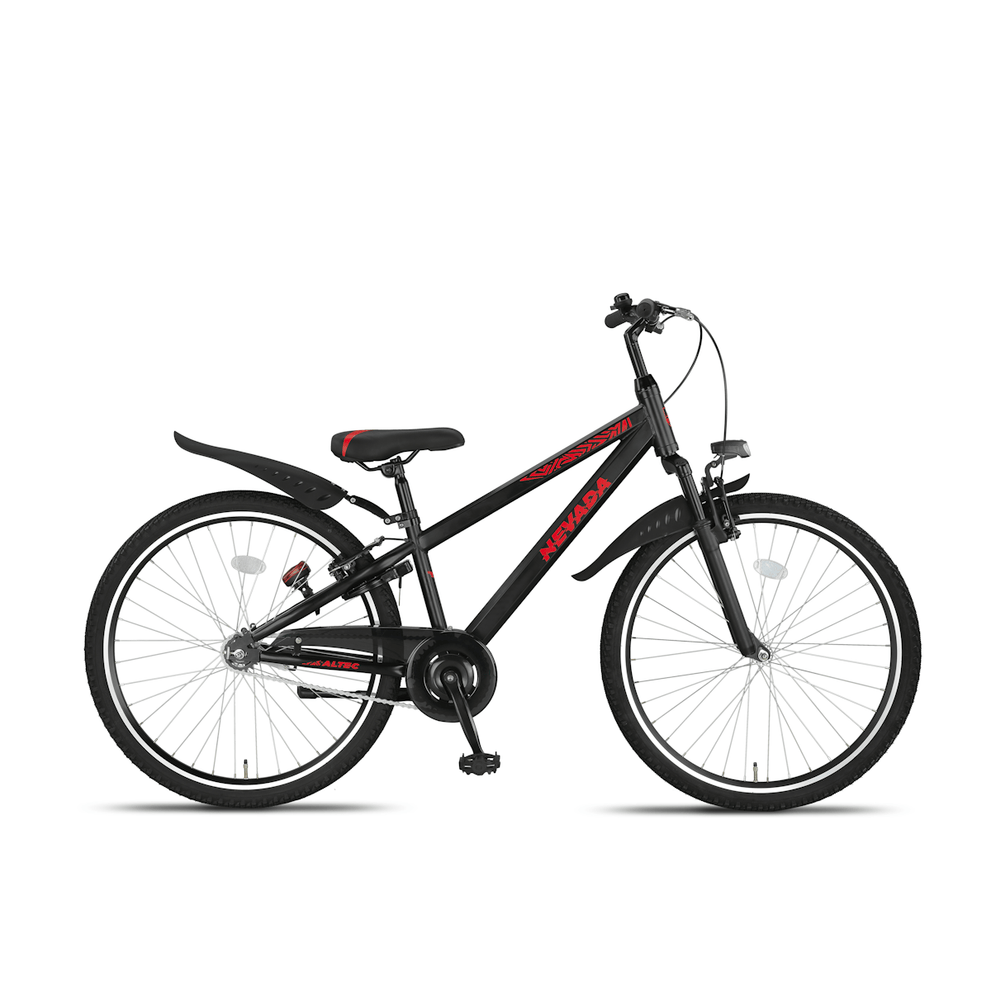 Het zadel van de Altec Nevada 26 inch is eenvoudig verstelbaar, waardoor de fiets met je meegroeit. Daarnaast is de fiets uitgerust met handige accessoires zoals een zijstandaard, ringslot en bel, die het gebruiksgemak vergroten.