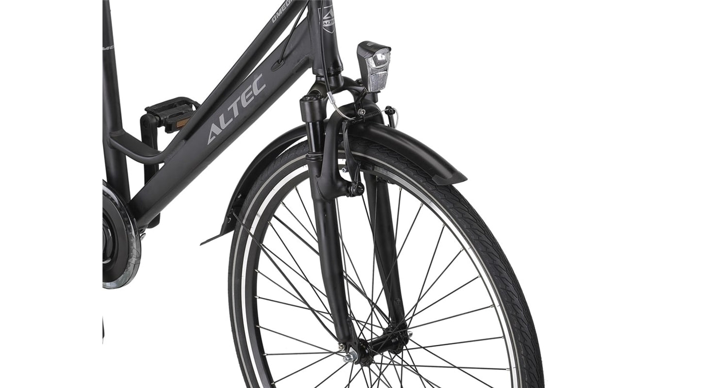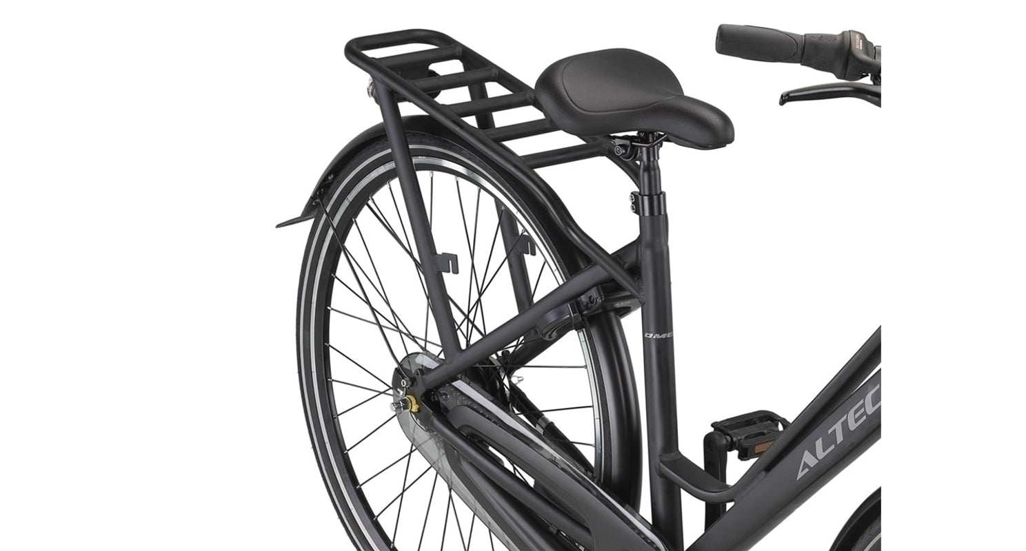 Een van de belangrijkste kenmerken van de Altec Omega Damesfiets is het oversized aluminium frame. Dit frame is niet alleen lichtgewicht, maar ook buitengewoon sterk, waardoor de fiets bestand is tegen de dagelijkse slijtage van stedelijk gebruik. De dubbelwandige aluminium velgen dragen verder bij aan de robuustheid van de fiets, waardoor je zorgeloos kunt genieten van een stabiele rit, ongeacht de ondergrond.