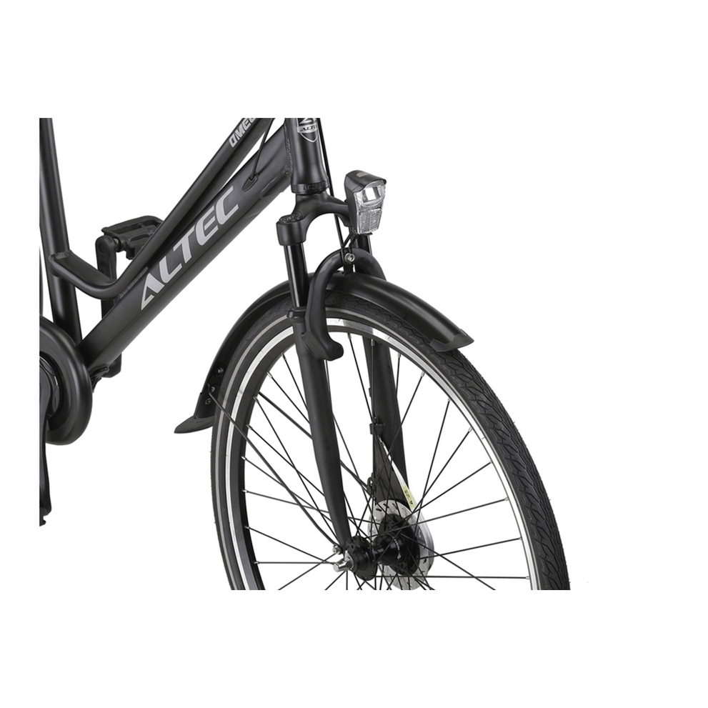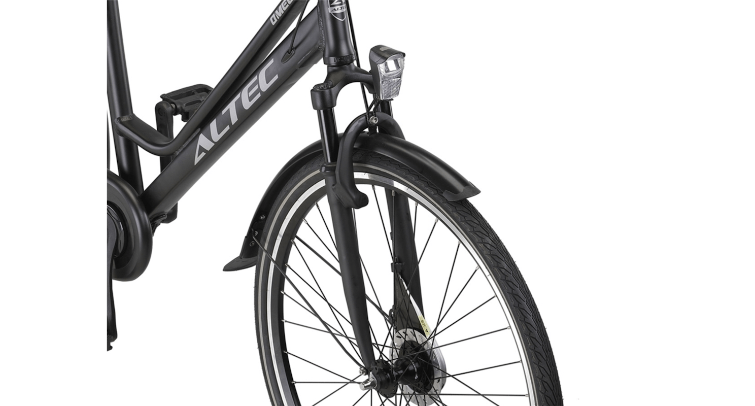 Voor een comfortabele rit, ongeacht de afstand, is de Altec Omega Plus uitgerust met een verende voorvork. Dit vermindert schokken op hobbelige wegen en zorgt voor een soepele fietservaring. Zowel het zadel als het stuur zijn in hoogte verstelbaar, zodat u altijd de perfecte fietshouding kunt vinden.