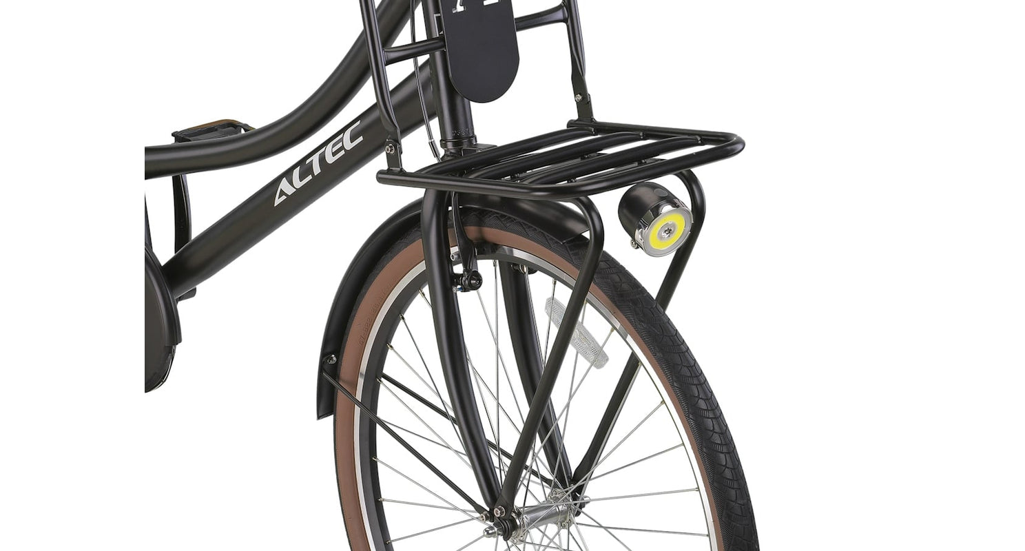 Met een handige bagagedrager voor en achter biedt de Altec Urban Transportfiets volop ruimte voor het vervoeren van boodschappen, tassen of andere benodigdheden. De fiets is voorzien van een klassieke terugtraprem, aangevuld met een v-brake handrem aan de voorkant voor extra veiligheid.