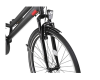 De fiets is uitgerust met een verende voorvork die oneffenheden in de weg opvangt, zodat je altijd soepel blijft rijden. Met de verstelbare stuurpen en het in hoogte verstelbare zadel stel je de fiets eenvoudig af naar jouw ideale zithouding. Ook praktisch zijn de zijstandaard en de betrouwbare bel.