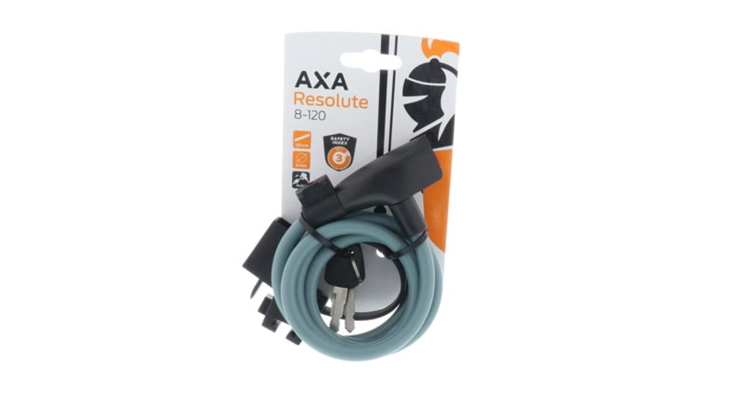 De AXA Resolute 8-120 is een standaard kabelslot geschikt voor kinderfietsen die kort geparkeerd worden op plaatsen waar het diefstalrisico laag is. Dit kabelslot is gebruiksvriendelijk doordat u de sleutel niet hoeft te draaien om de kabel te vergrendelen. U bergt hem gemakkelijk op door gebruik te maken van de bijgeleverde basic framehouder. Het kabelslot is 120 cm lang, de diameter van de kabel bedraagt 8 mm. De kabel is voorzien van een stevige kunststof coating in de kleur army green zodat de fiets niet wordt beschadigd.