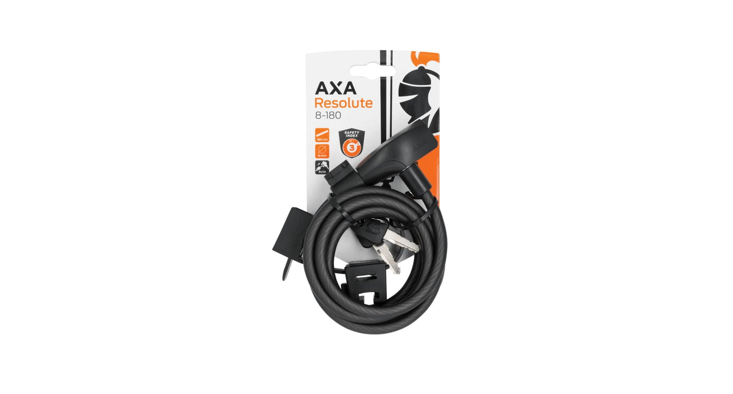 De AXA Resolute 8-180 is een standaard kabelslot, geschikt voor kort gebruik op plaatsen waar het diefstalrisico laag is. Dit kabelslot is gebruiksvriendelijk doordat u de sleutel niet hoeft te draaien om de kabel te vergrendelen. U bergt hem gemakkelijk op door gebruik te maken van de bijgeleverde basic framehouder. Het kabelslot is 180 cm lang, de diameter van de kabel bedraagt 8 mm. De kabel is voorzien van een luxe matte coating zodat uw fiets niet wordt beschadigd.