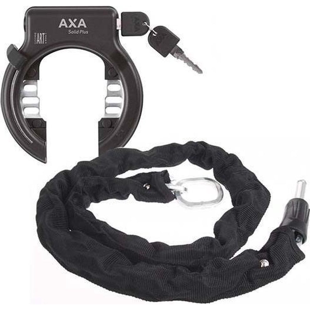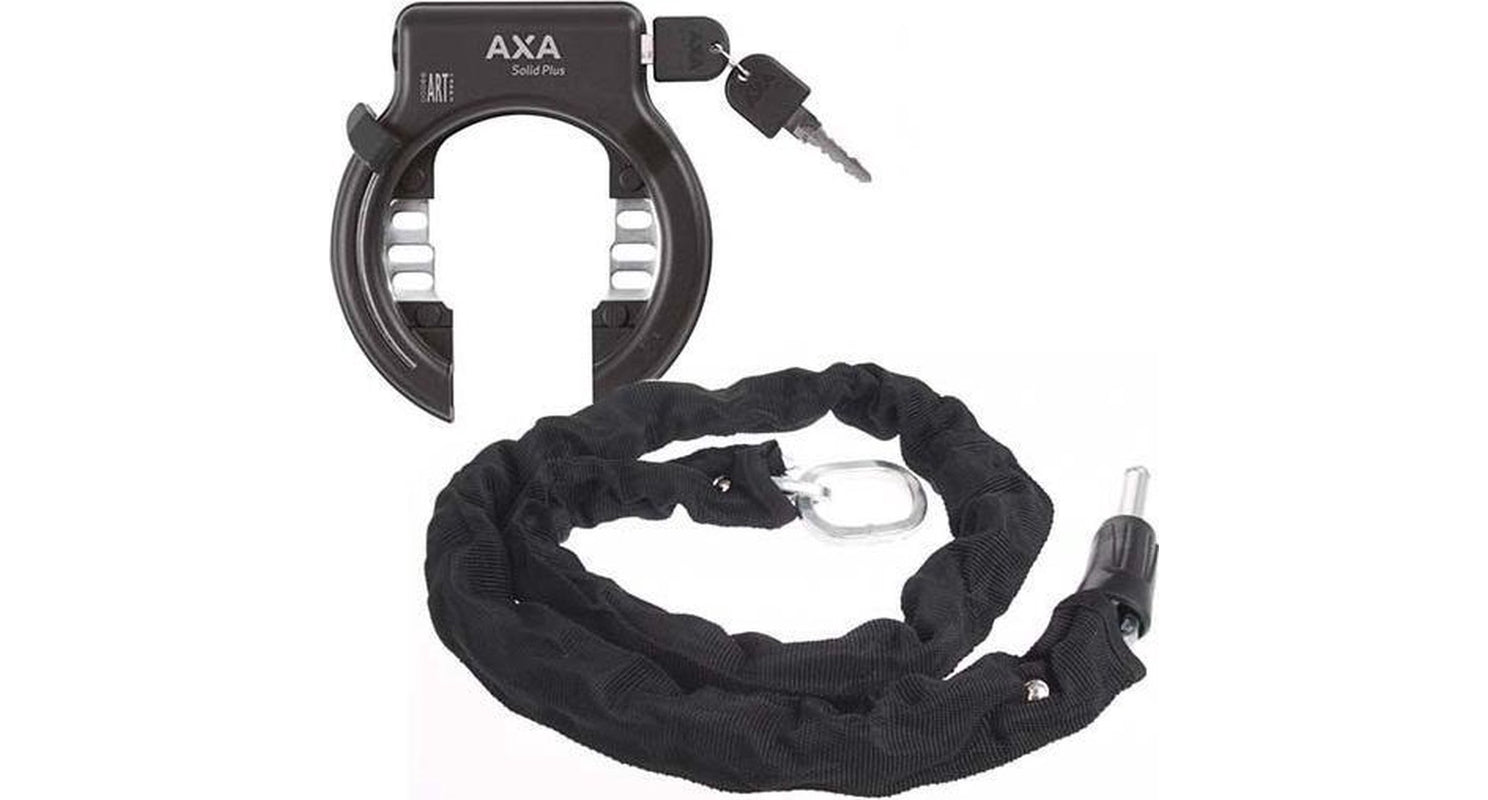 Het slot word geleverd inclusief AXA RL-100 cm insteekketting, waarmee je je fiets aan een vast object kunt vastmaken, zoals een paal, boom of fietsrek. Hiermee voorkom je dat je fiets compleet meegenomen wordt, en maakt het stallen van je fiets extra veilig.