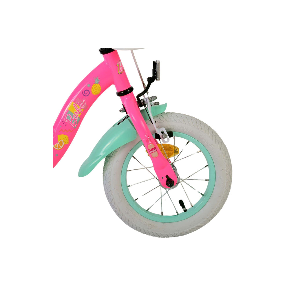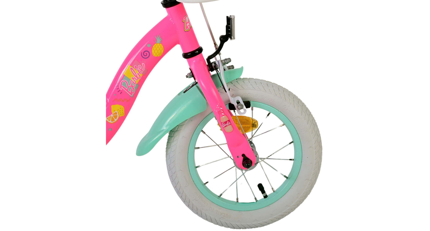 Veiligheid staat voorop! Daarom heeft deze gave fiets een handrem en terugtraprem en afneembare zijwieltjes en een gesloten kettingkast. Daarnaast heeft de fiets in het voor- en achterwiel en in de trappers reflectoren. Ook aan het comfort is gedacht. De mooie roze Barbie fiets met fleurige accenten heeft een comfortabel zacht zadel en een mandje om alle spulletjes in mee te nemen. Om zo lang mogelijk van de fiets te kunnen genieten zijn het zadel en stuur in hoogte verstelbaar. Official licensed Barbie Product.