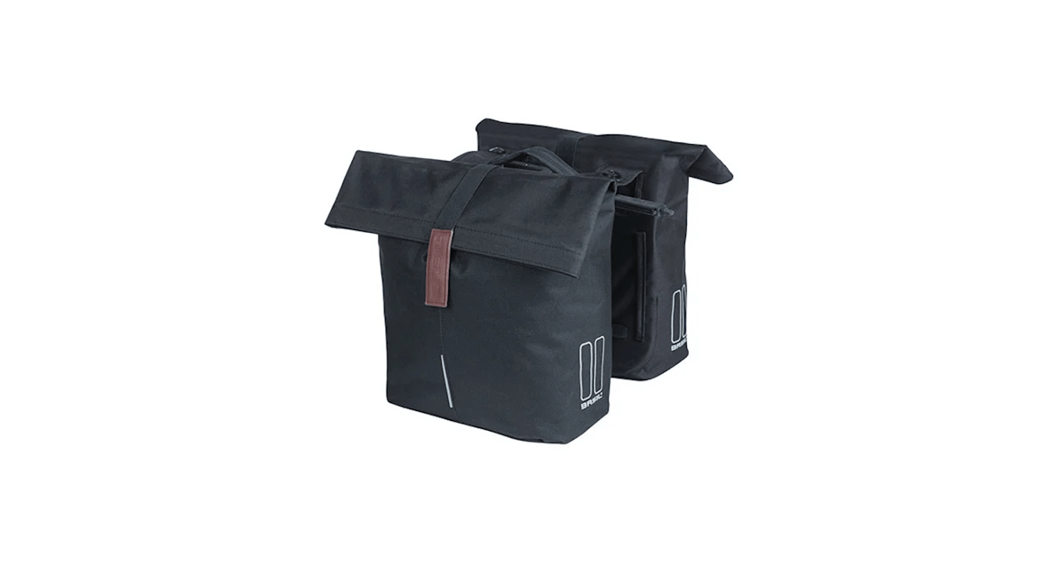 De Basil City is een modieuze dubbele fietstas met genoeg ruimte voor je boodschappen. Uitgevoerd in een zwarte kleur en geschikt voor bevestiging achterop je (elektrische) fiets.