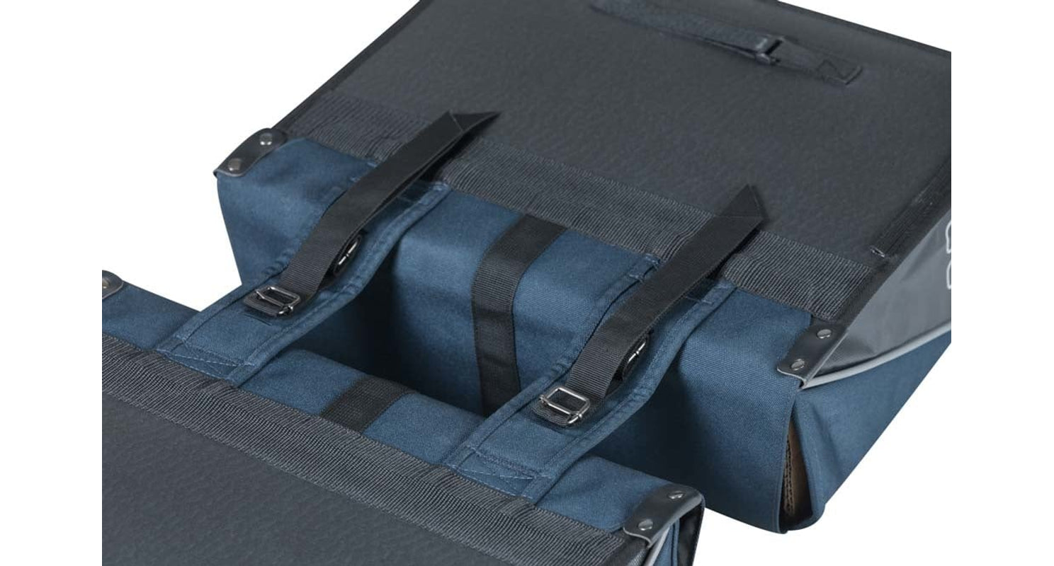 Met de 35 liter ruime blauwe dubbele fietstassen heb je altijd voldoende ruimte bij de hand.