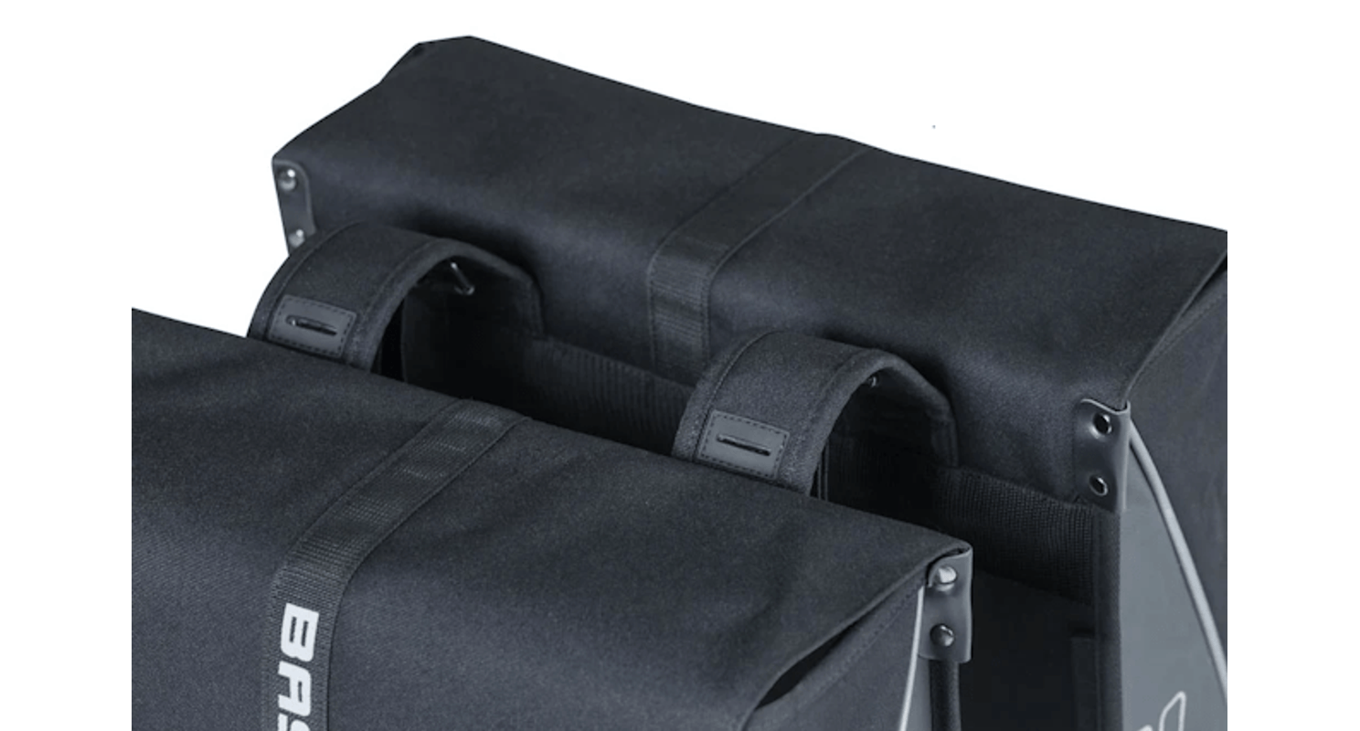 Met de 35 liter ruime zwarte dubbele fietstassen heb je altijd voldoende ruimte bij de hand.