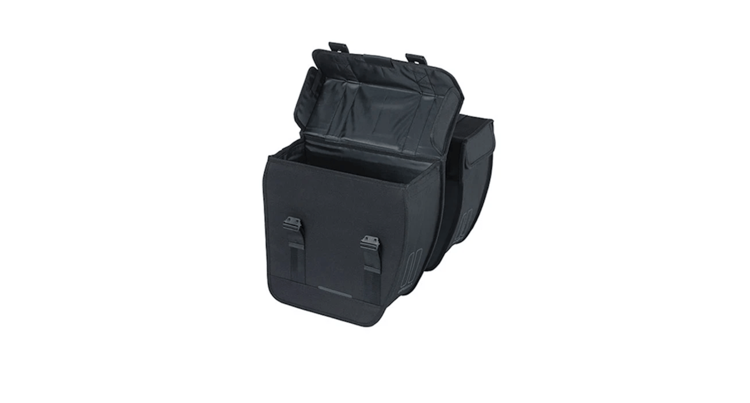 De Basil Tour is een stijlvolle dubbele fietstas met een inhoud van 35 liter. De extra grote, zwarte fietstassen zijn geschikt voor zowel een dames- als herenfiets.De fietstassen zijn voorzien van een afgeronde voorzijde.