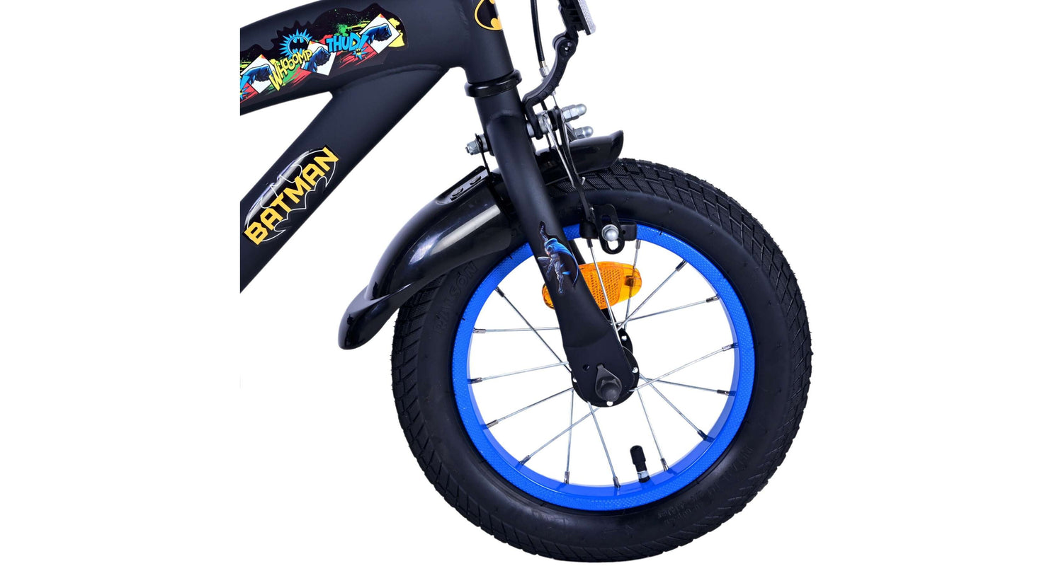 Veiligheid staat voorop! Daarom heeft deze gave fiets een handrem en terugtraprem en een gesloten kettingkast. Daarnaast heeft de fiets afneembare zijwieltjes om snel te leren fietsen, een bel, en reflectoren in de trappers. Ook aan het comfort is gedacht. De mooie zwarte Batman fiets met blauwe accenten heeft extra lange spatborden om al het vuil tegen te houden, een aangenaam zacht zadel en een uniek frame dat wel tegen een stootje kan. Om zo lang mogelijk van de fiets te kunnen genieten zijn het zadel en stuur in hoogte verstelbaar. Kortom: een topkwaliteit fiets waar uw kind nog jaren van kan genieten! Official Licensed Batman Product.