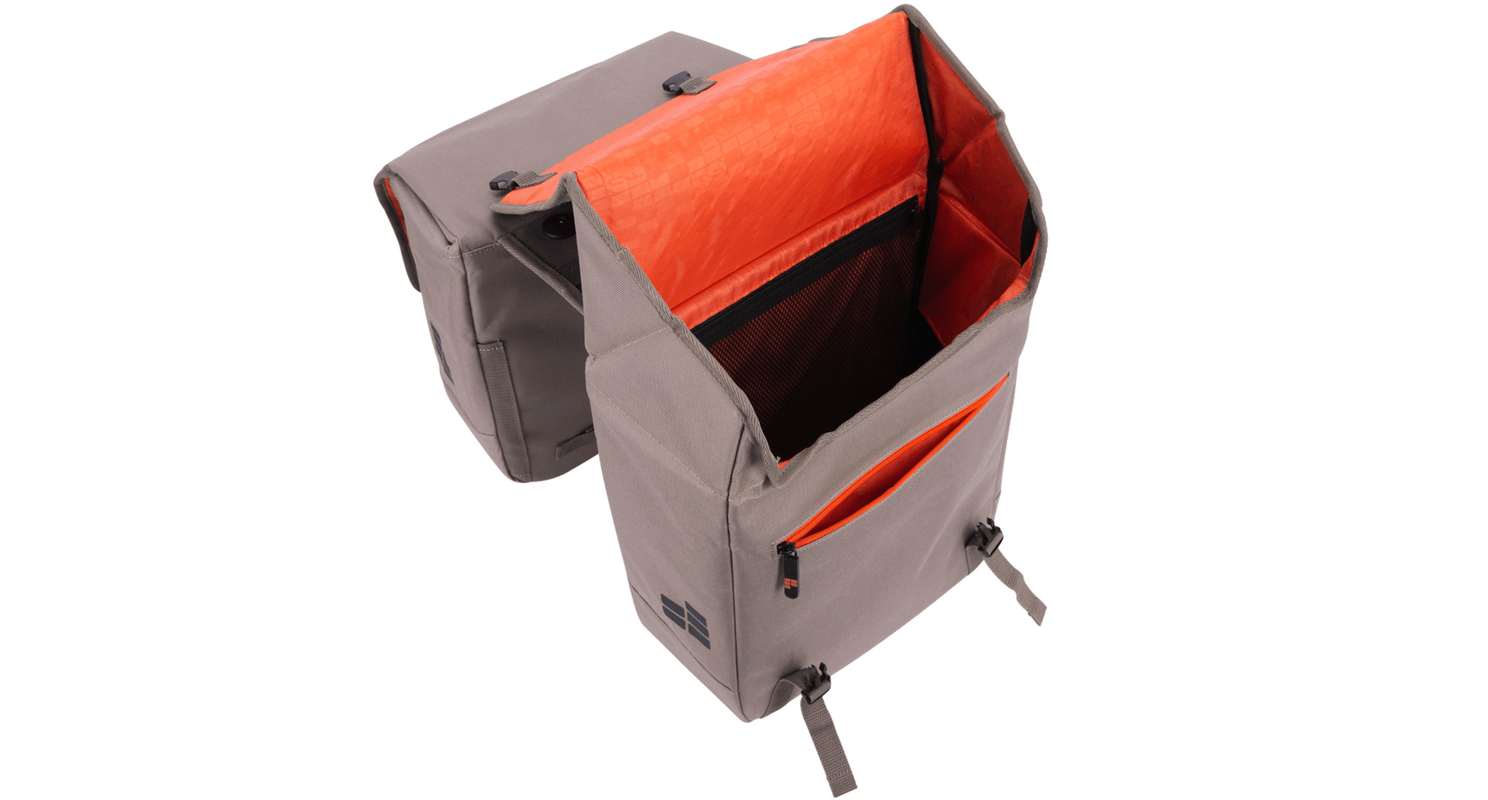 De fietstas heeft een totale inhoud van 32 liter, dit is verdeeld over twee kanten met beide 16 liter. Beide tassen zijn opgebouwd uit een groot hoofdvak en een extra binnenvak. Het grote hoofdvak is groot genoeg om een notebook van 15,6″ in op te bergen. Ook zijn deze dubbele fietstassen uitermate geschikt voor bijvoorbeeld boodschappen. Op beide flappen zijn kleine, met rits afsluitbare vakken terug te vinden.