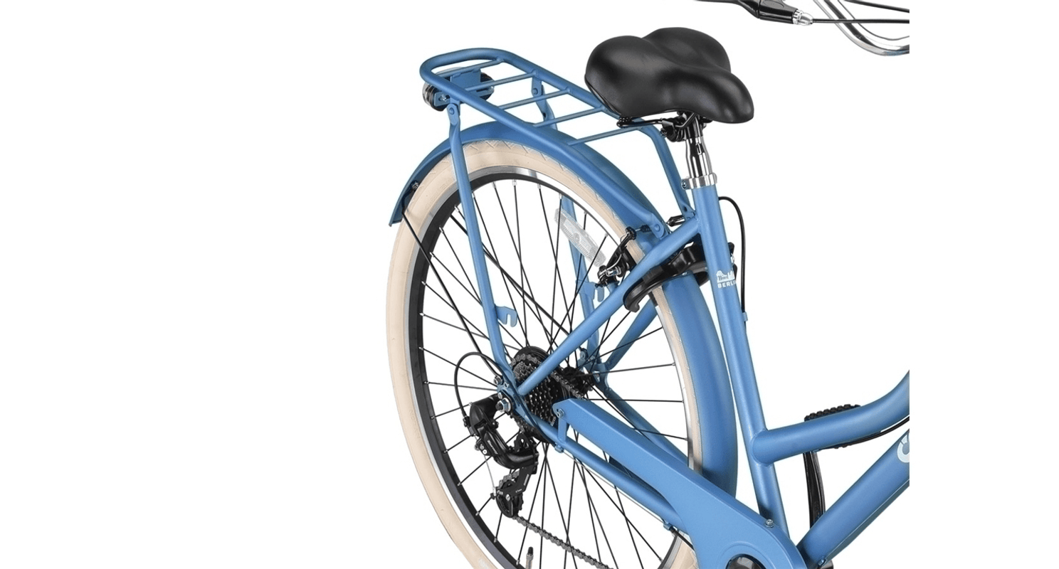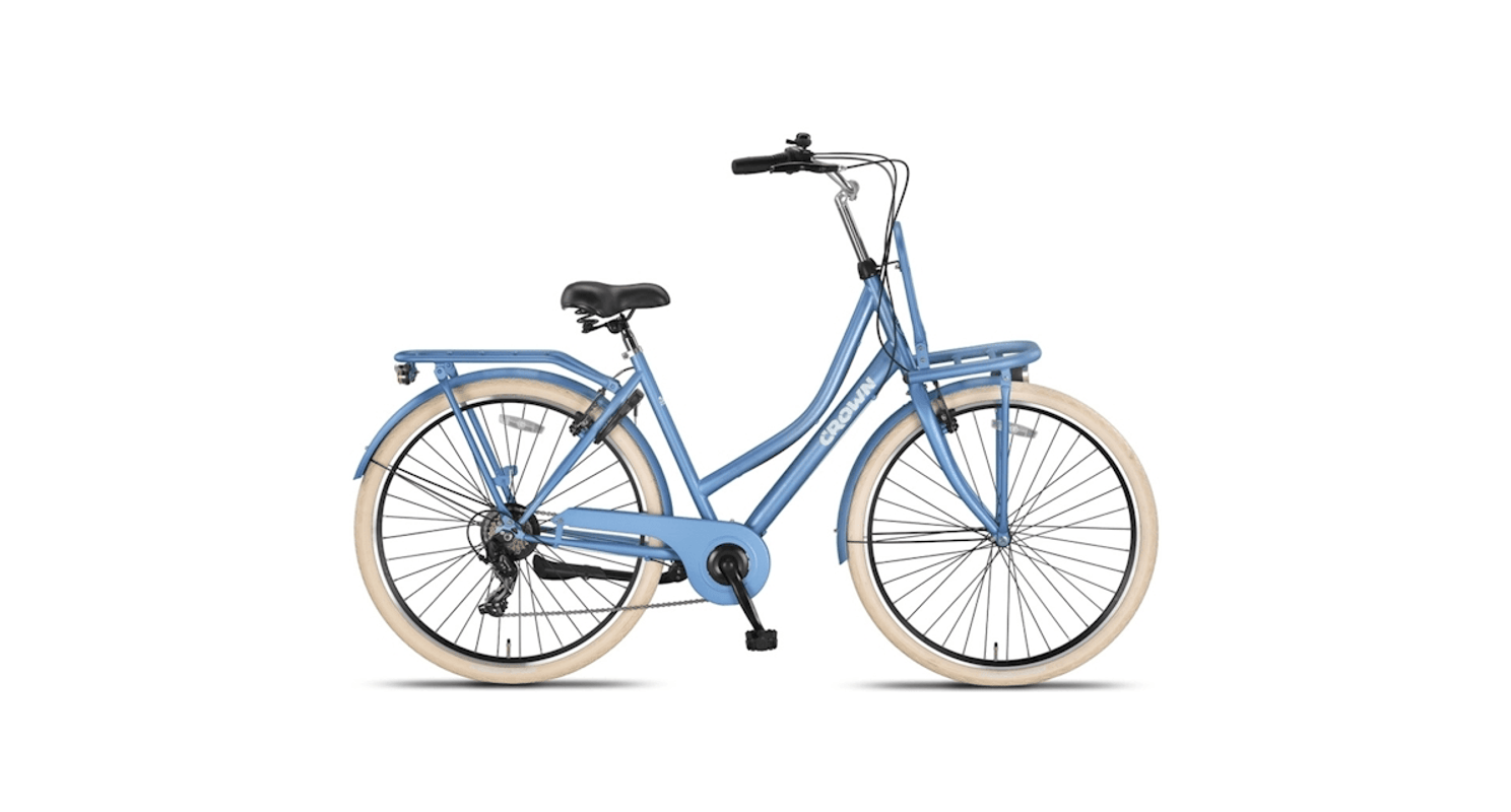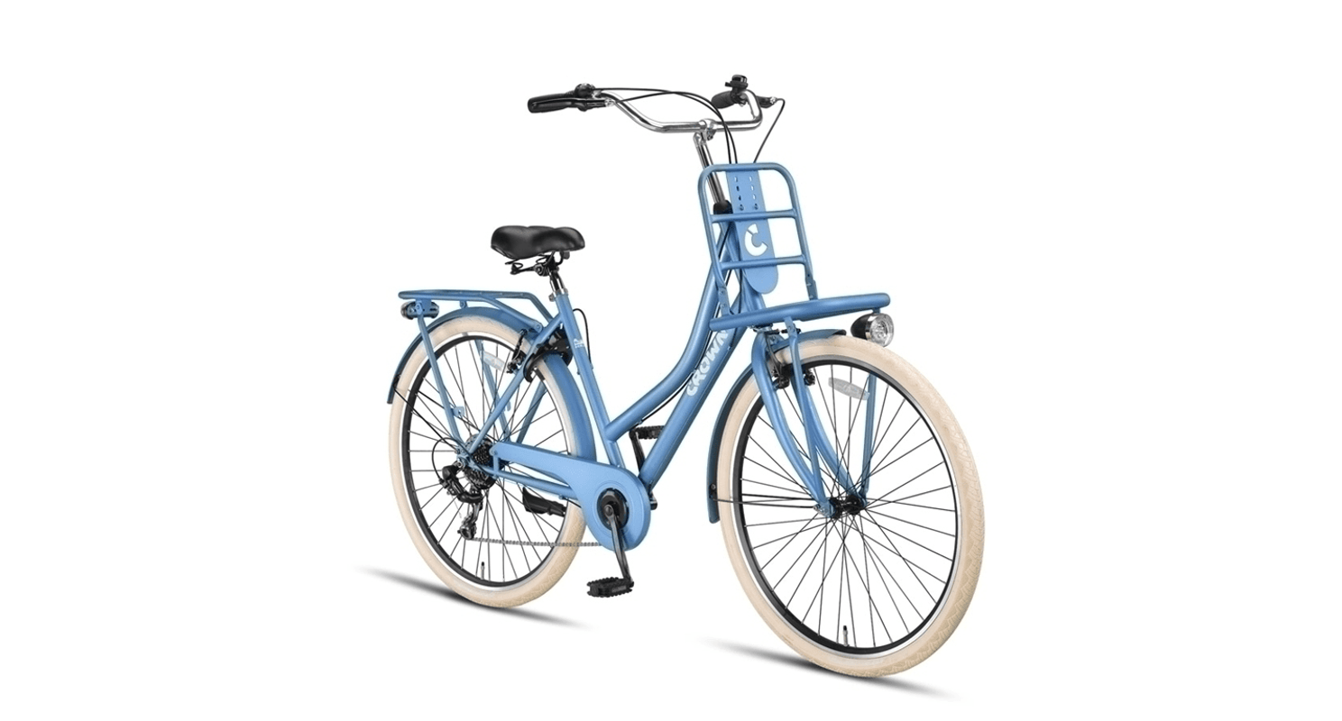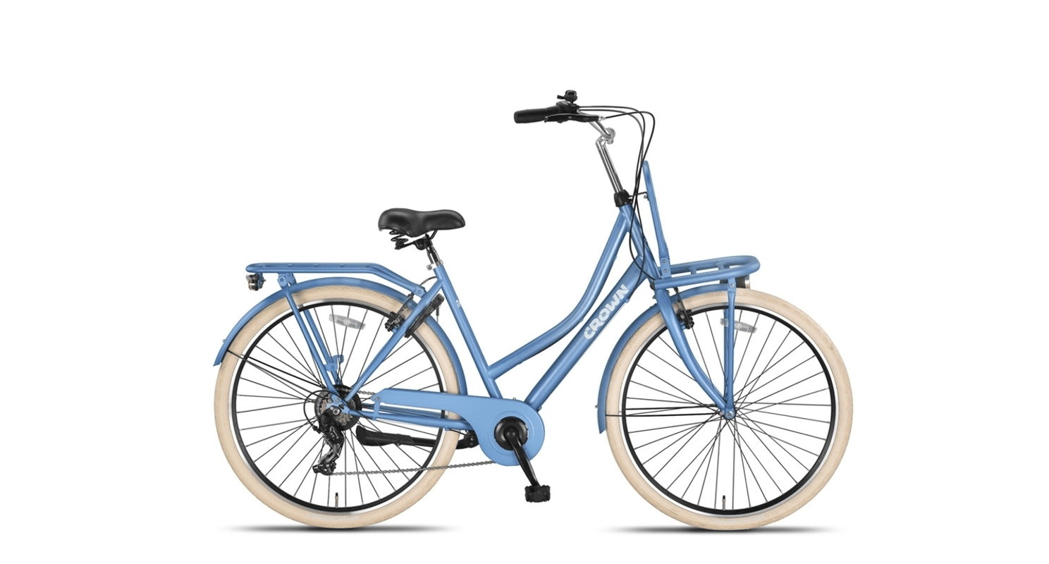 De Crown Berlin Transportfiets voor dames is de perfecte combinatie van robuustheid en eigentijdse stijl. Deze fiets is speciaal ontworpen voor dagelijks gebruik en biedt niet alleen een stijlvolle uitstraling, maar ook praktisch gemak. Met een stevig stalen frame en dubbelwandige aluminium velgen is de Crown Berlin gemaakt om tegen een stootje te kunnen en jarenlang mee te gaan. Ideaal voor stadsritten, boodschappen doen, of gewoon een ontspannen ritje door de buurt.