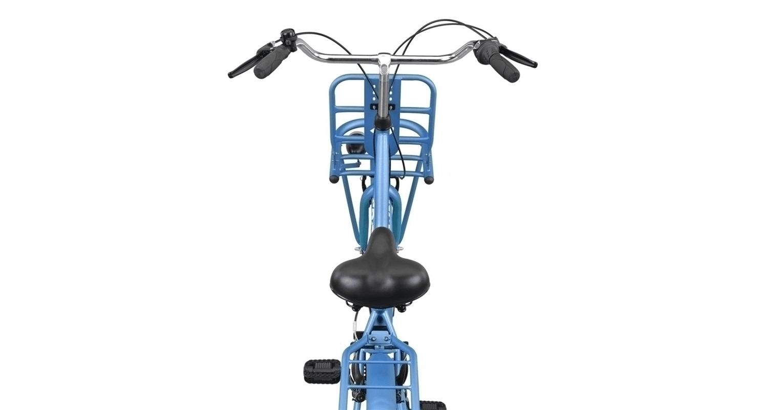 Een van de belangrijkste kenmerken van deze transportfiets is de dubbele bagagedrager. De voor- en achterdrager bieden voldoende ruimte om al je spullen mee te nemen. Of het nu gaat om een volle boodschappentas, een rugzak of een stevige krat, je kunt het eenvoudig op de fiets meenemen. Dankzij de 7 Shimano versnellingen kun je soepel schakelen, zelfs als je zwaar beladen bent of een heuvel moet trotseren. De V-brake handremmen aan de voor- en achterkant zorgen ervoor dat je altijd veilig en gecontroleerd kunt stoppen.