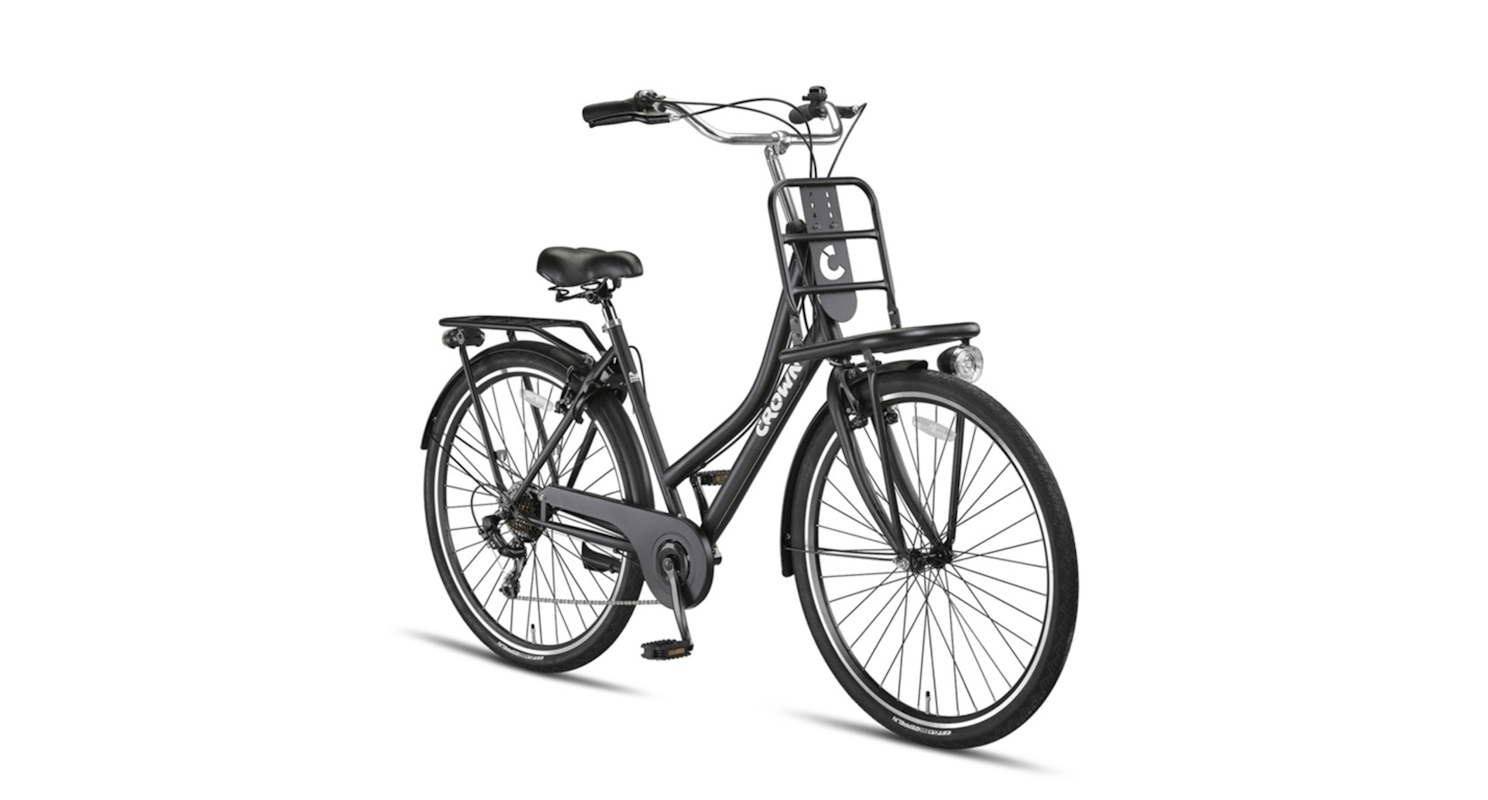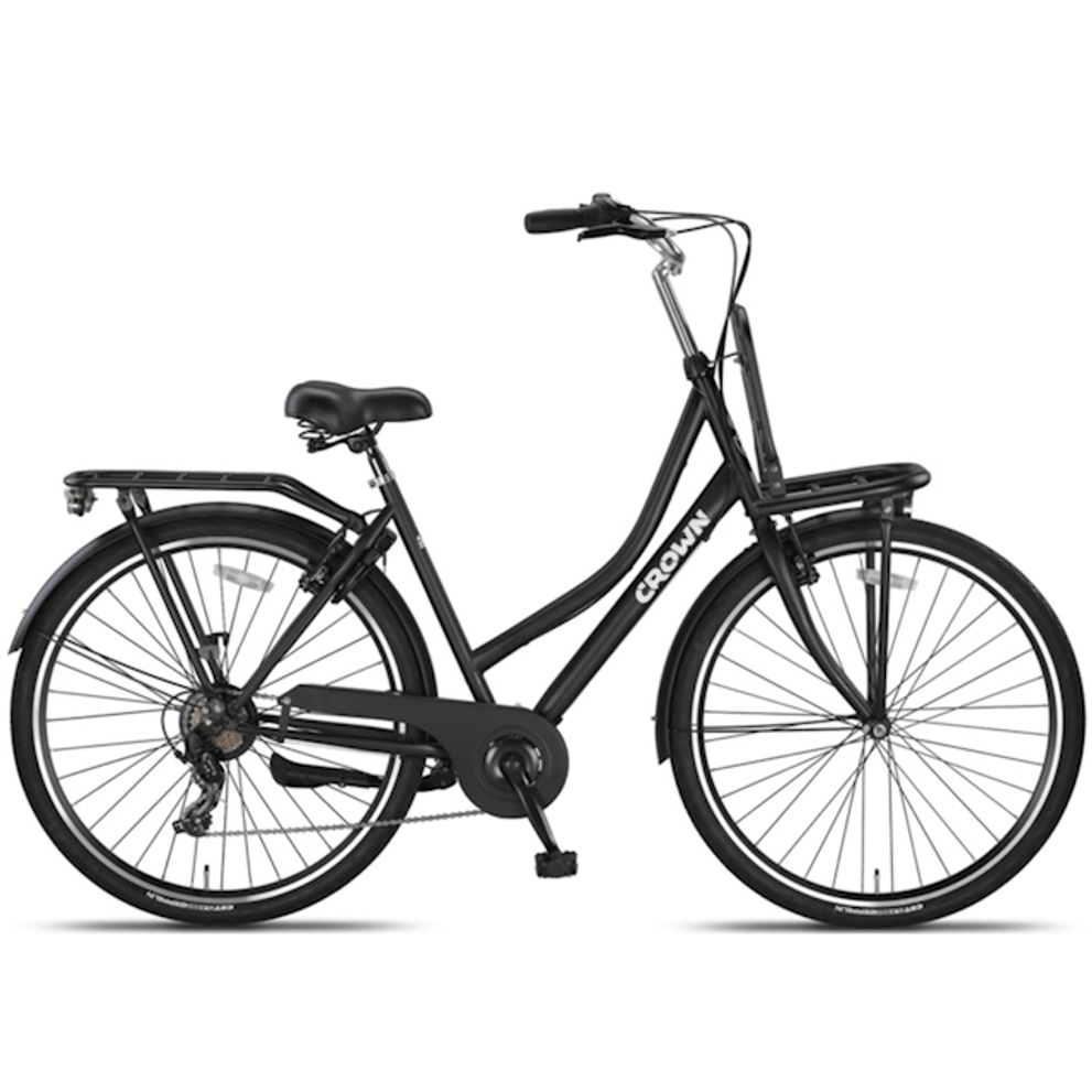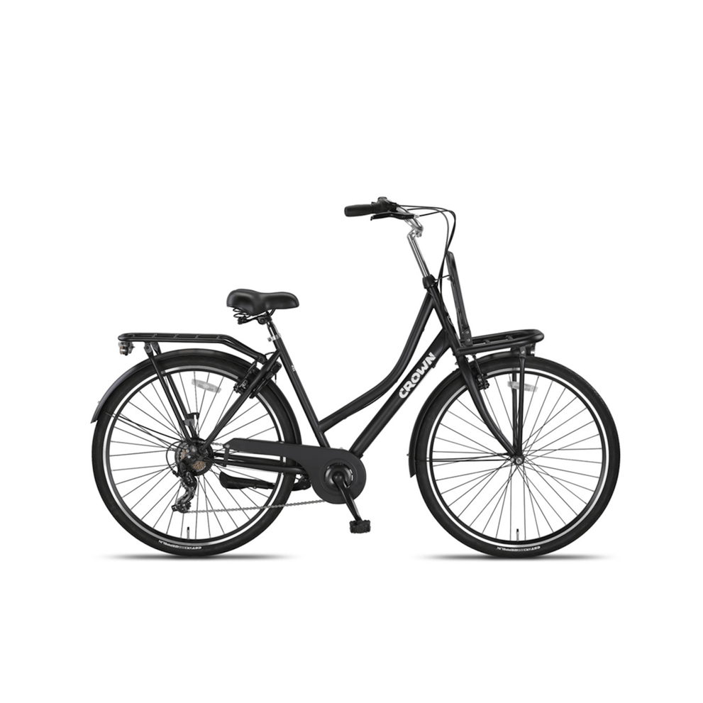 De Crown Berlin Transportfiets voor dames is de perfecte combinatie van robuustheid en eigentijdse stijl. Deze fiets is speciaal ontworpen voor dagelijks gebruik en biedt niet alleen een stijlvolle uitstraling, maar ook praktisch gemak. Met een stevig stalen frame en dubbelwandige aluminium velgen is de Crown Berlin gemaakt om tegen een stootje te kunnen en jarenlang mee te gaan. Ideaal voor stadsritten, boodschappen doen, of gewoon een ontspannen ritje door de buurt.