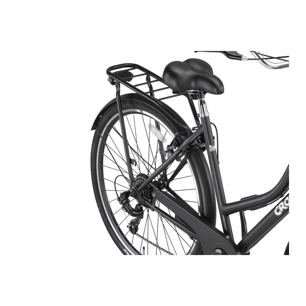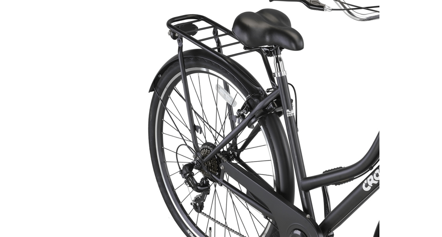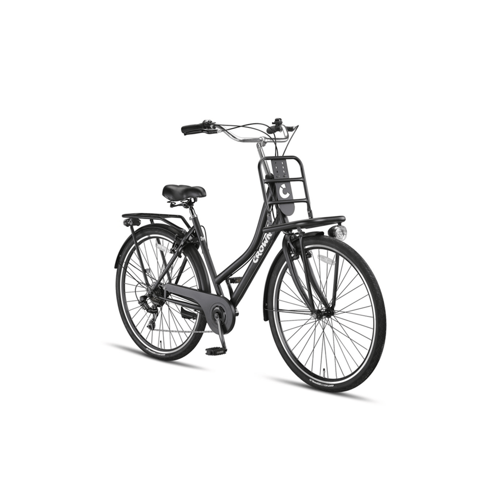 De Crown Berlin Transportfiets voor dames is de perfecte combinatie van robuustheid en eigentijdse stijl. Deze fiets is speciaal ontworpen voor dagelijks gebruik en biedt niet alleen een stijlvolle uitstraling, maar ook praktisch gemak. Met een stevig stalen frame en dubbelwandige aluminium velgen is de Crown Berlin gemaakt om tegen een stootje te kunnen en jarenlang mee te gaan. Ideaal voor stadsritten, boodschappen doen, of gewoon een ontspannen ritje door de buurt.