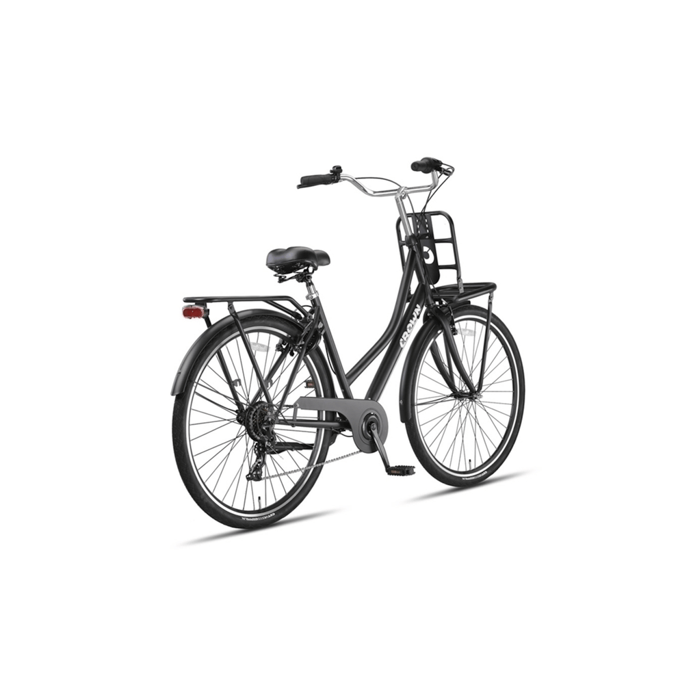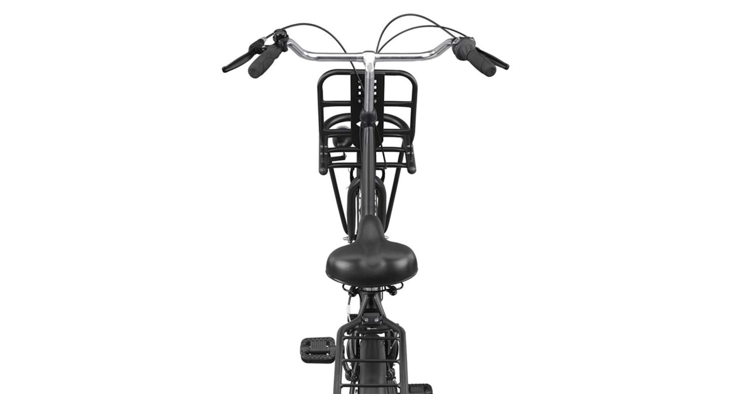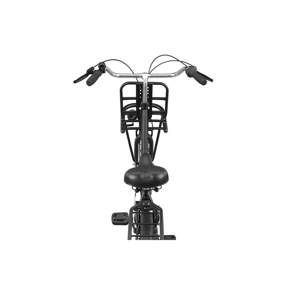 Een van de belangrijkste kenmerken van deze transportfiets is de dubbele bagagedrager. De voor- en achterdrager bieden voldoende ruimte om al je spullen mee te nemen. Of het nu gaat om een volle boodschappentas, een rugzak of een stevige krat, je kunt het eenvoudig op de fiets meenemen. Dankzij de 7 Shimano versnellingen kun je soepel schakelen, zelfs als je zwaar beladen bent of een heuvel moet trotseren. De V-brake handremmen aan de voor- en achterkant zorgen ervoor dat je altijd veilig en gecontroleerd kunt stoppen.