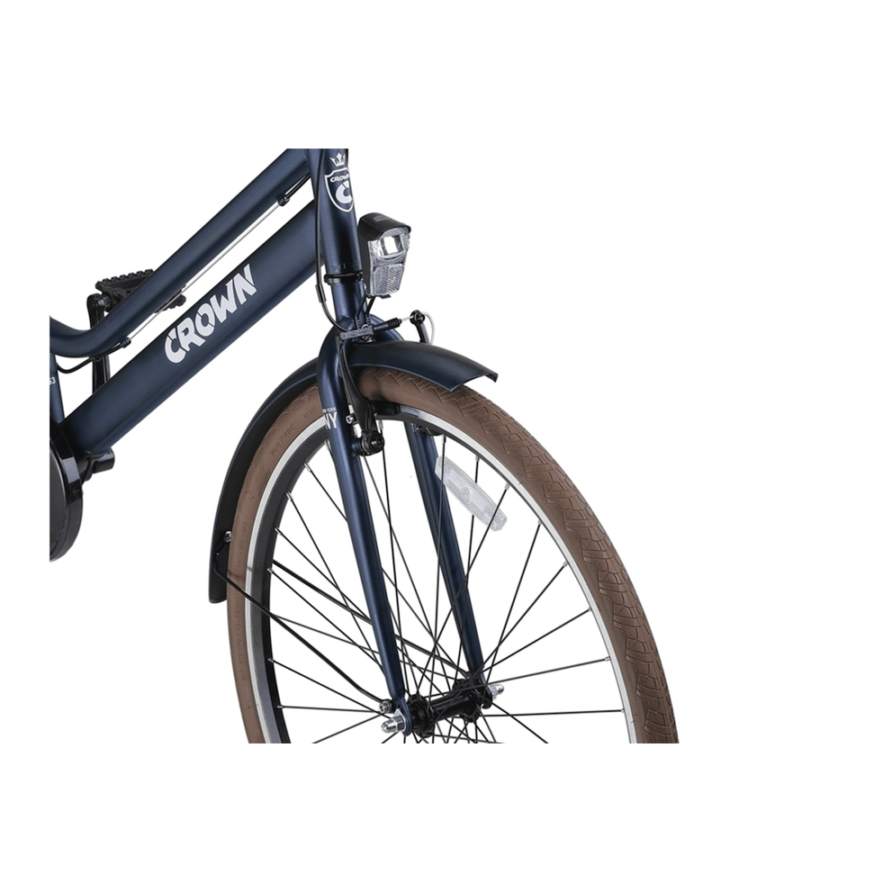 De fiets is uitgerust met dubbelwandige aluminium velgen, die extra stevigheid en duurzaamheid bieden. Deze velgen zijn bestand tegen de dagelijkse slijtage en zorgen ervoor dat je fiets langer meegaat. Daarnaast zorgen de Shimano 7 versnellingen ervoor dat je moeiteloos door de stad kunt fietsen, ongeacht de wegomstandigheden. Van glad asfalt tot hobbelige straten, met de Crown New York Damesfiets rijd je altijd soepel.