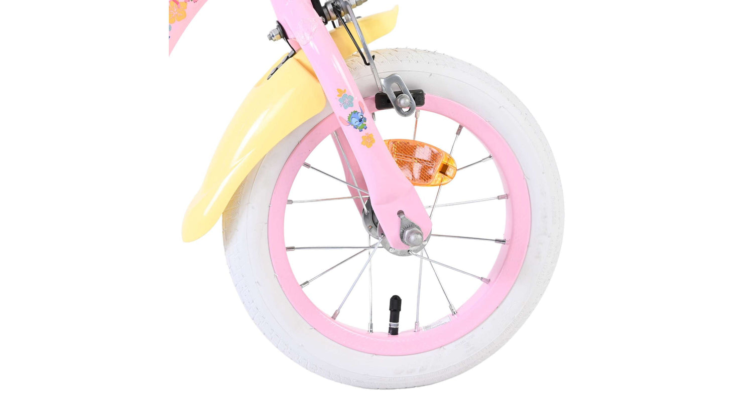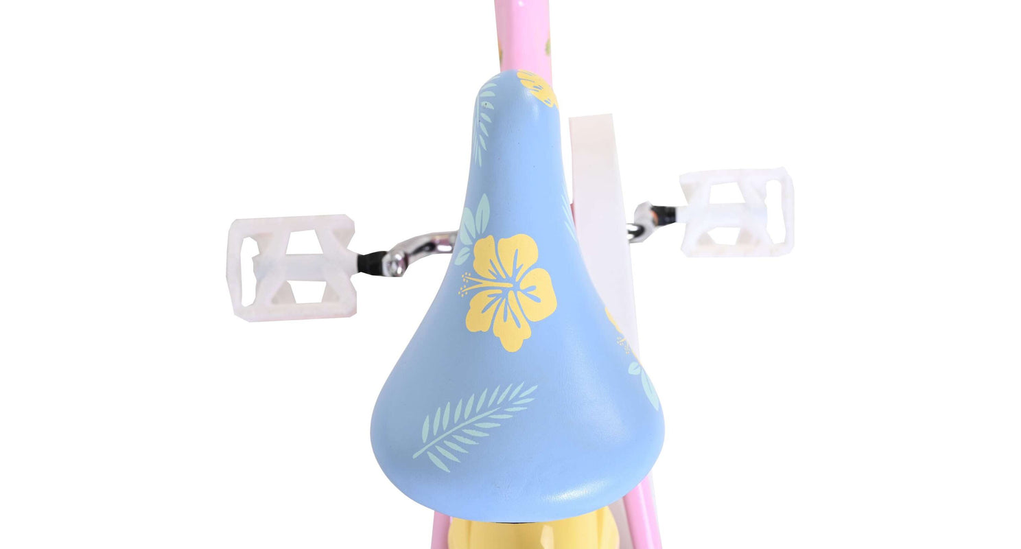 Veiligheid staat voorop! Daarom heeft deze gave fiets een handrem en terugtraprem en afneembare zijwieltjes. Daarnaast heeft de fiets een leuke bel. Ook aan het comfort is gedacht. De mooie roze en tropische Stitch fiets is voorzien van een mandje. Om zo lang mogelijk van de fiets te kunnen genieten zijn het zadel en stuur in hoogte verstelbaar. Official Licensed Disney Stitch Product.