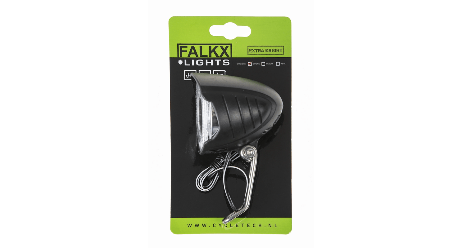 FALKX Dark Moon Koplamp met RVS Beugel Naafdynamo: Betrouwbare Verlichting voor je Fiets