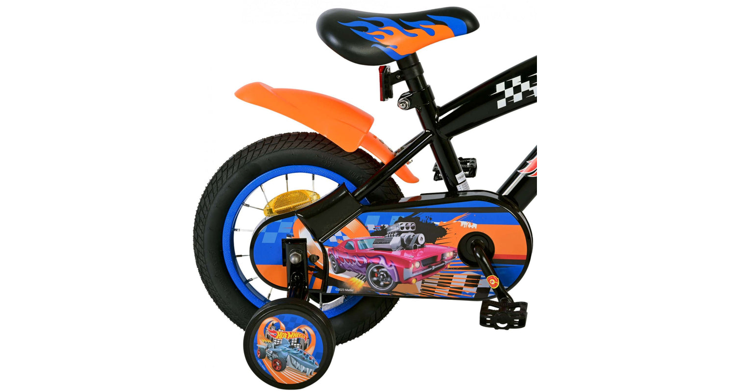 Veiligheid staat voorop! Daarom heeft deze gave fiets een handrem en terugtraprem en een gesloten kettingkast. Daarnaast heeft de fiets afneembare zijwieltjes om snel te leren fietsen en reflectoren voor en achter. Ook aan het comfort is gedacht. De mooie zwarte Hot Wheels fiets met blauw en oranje accenten heeft een aangenaam zacht zadel en een uniek frame dat wel tegen een stootje kan. Om zo lang mogelijk van de fiets te kunnen genieten zijn het zadel en stuur in hoogte verstelbaar. Kortom: een topkwaliteit fiets waar uw kind nog jaren van kan genieten!