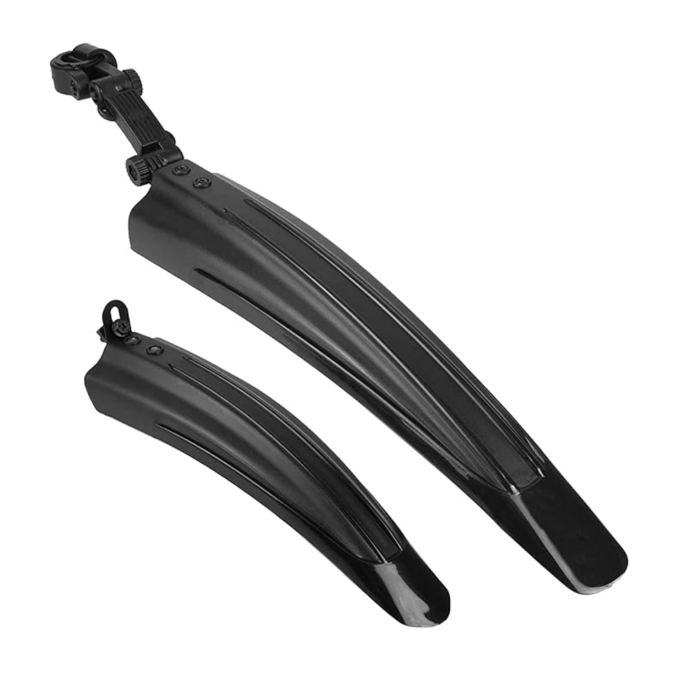 Met deze MTB spatbordenset rijd je zorgeloos door weer en wind. De set is geschikt voor 24 inch en 26 inch mountainbikes en biedt zowel voor als achter betrouwbare bescherming tegen modder en opspattend water. Zo blijft jouw fiets én kleding schoner, ook tijdens intensieve ritten door de bossen of op natte paden.
