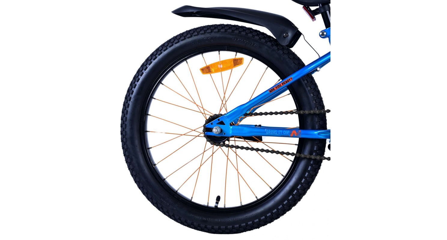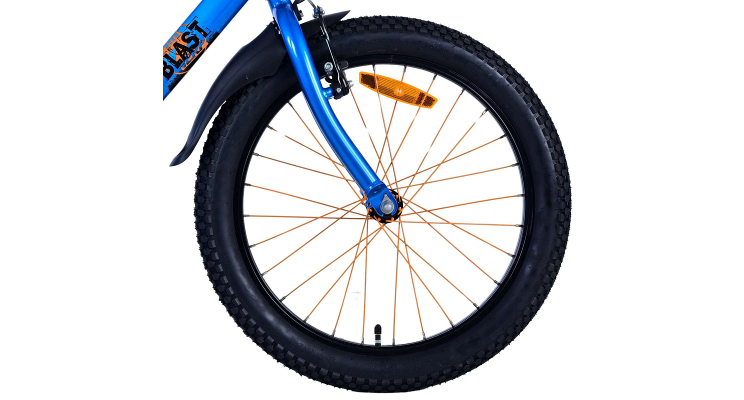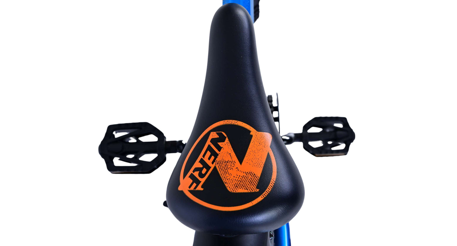 Veiligheid staat voorop! Daarom heeft deze gave fiets een handrem en terugtraprem en een leuke stuurplaat. Daarnaast heeft de fiets reflectoren in de wielen, voor- en achterop. Ook aan het comfort is gedacht. De mooie satijn blauwe NERF fiets met oranje accenten heeft een extra zacht zadel en handvaten, stoere brede banden, een stevig standaard, en grote spatborden om al het vuil tegen te houden. Om zo lang mogelijk van de fiets te kunnen genieten heeft de fiets een extra lange zadelpen waardoor deze nog langer met het kind meegroeit en ook het stuur is in hoogte verstelbaar. Kortom: een topkwaliteit fiets waar uw kind nog jaren van kan genieten!