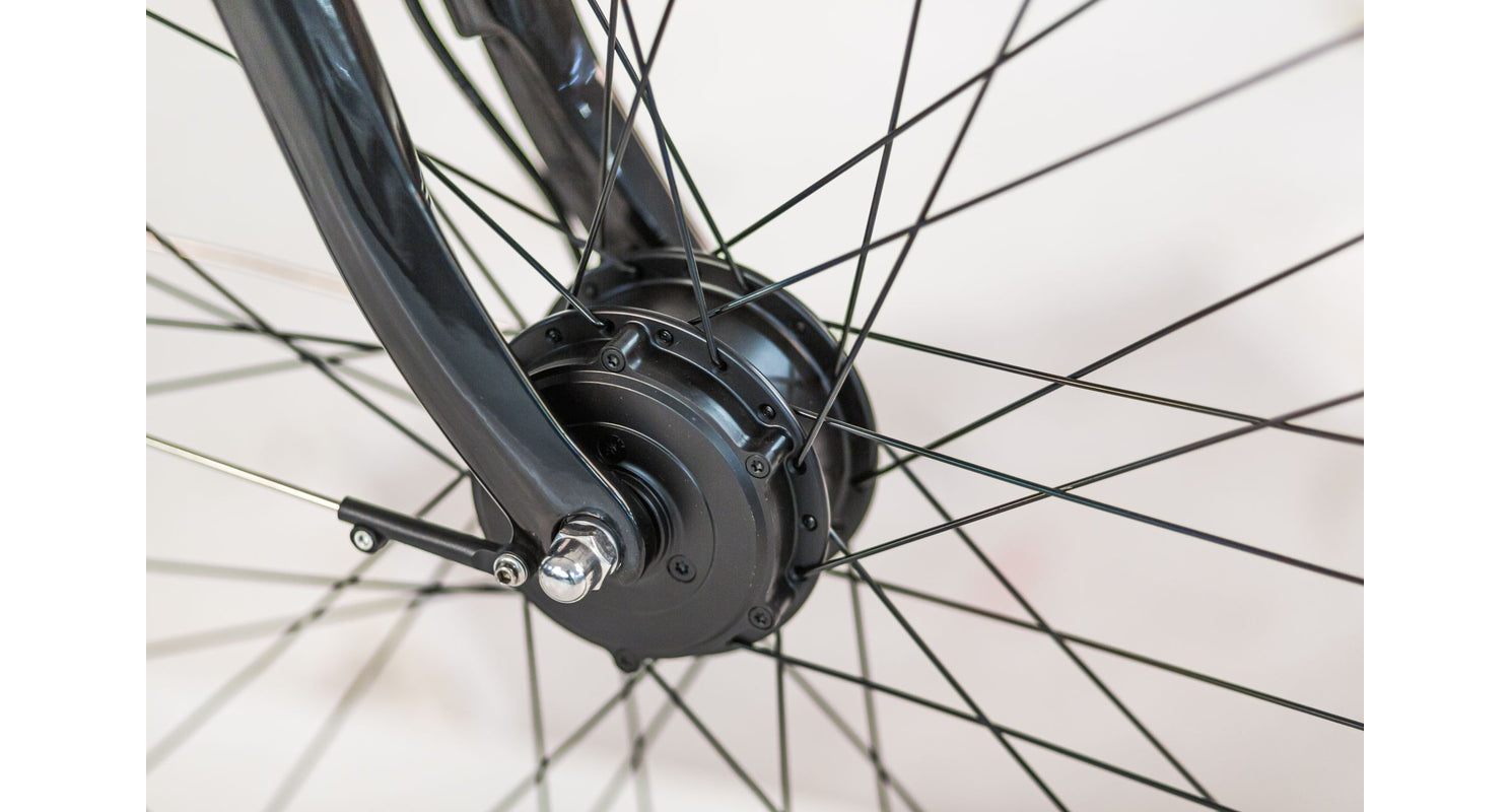 De Ananda FM 400 voorwielmotor (45Nm) biedt stabiele ondersteuning tot 25 km/u. Met 5 ondersteuningsstanden bepaal je zelf de mate van ondersteuning.