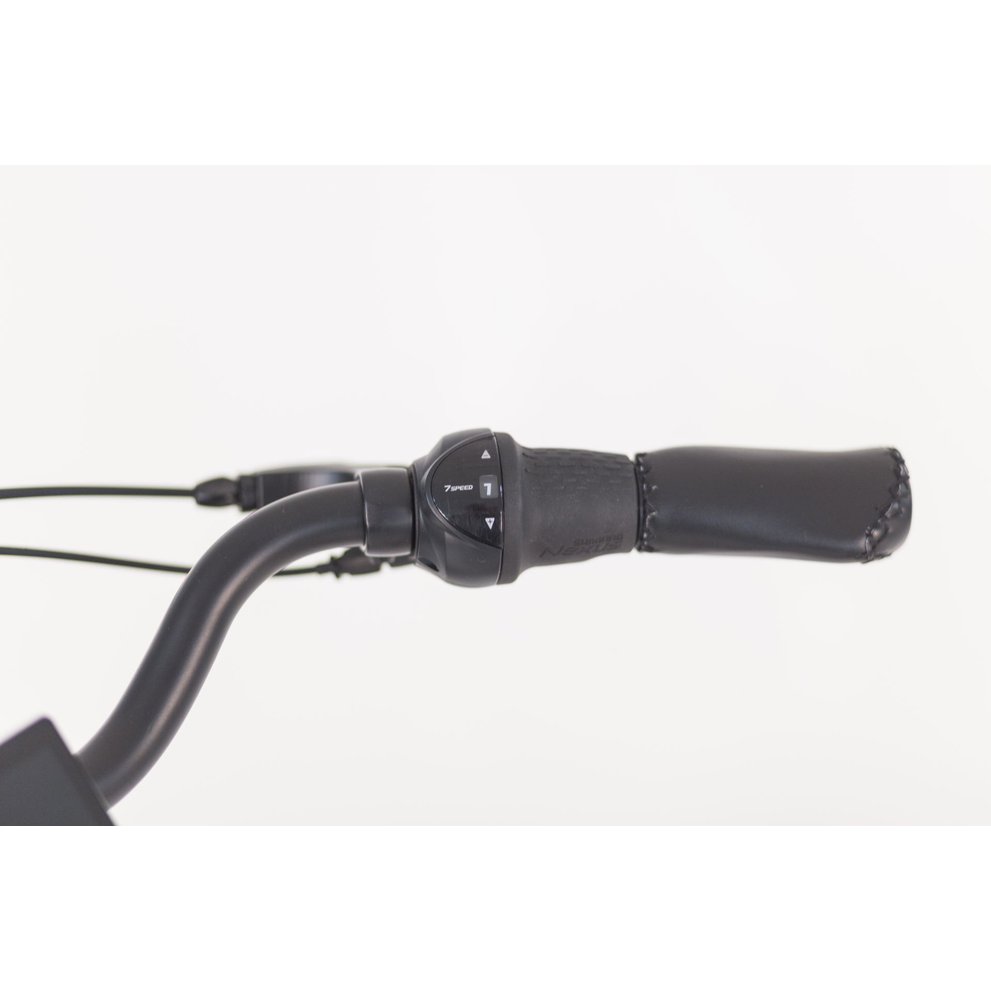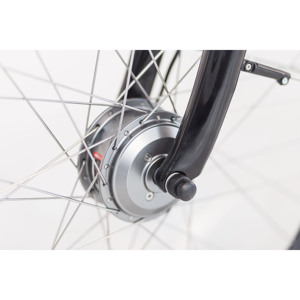 De Shimano Nexus 7 naafversnelling schakelt soepel en vraagt weinig onderhoud. In combinatie met de Rollerbrake achter en V-Brake voor heb je gecontroleerde en directe remkracht, ook bij wisselend weer. De voorwielmotor voelt natuurlijk aan en helpt je moeiteloos door de stad.