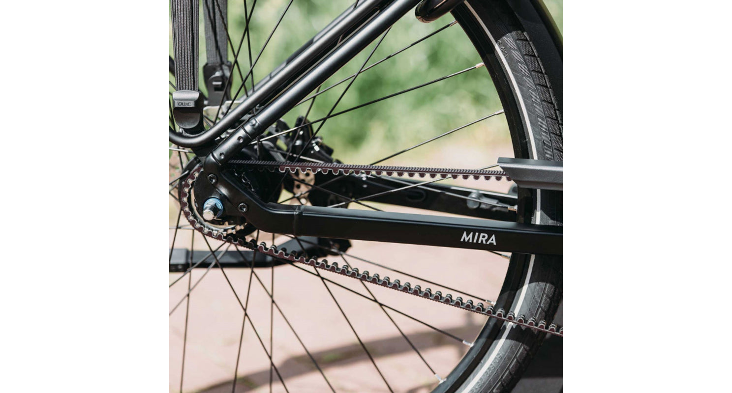 De Mira Tour is voorzien van een hoogwaardige riemaandrijving van carbon en krasvrij kunststof. Deze techniek maakt de fiets bijzonder stil, onderhoudsarm en zeer duurzaam – perfect voor jarenlang zorgeloos fietsplezier.