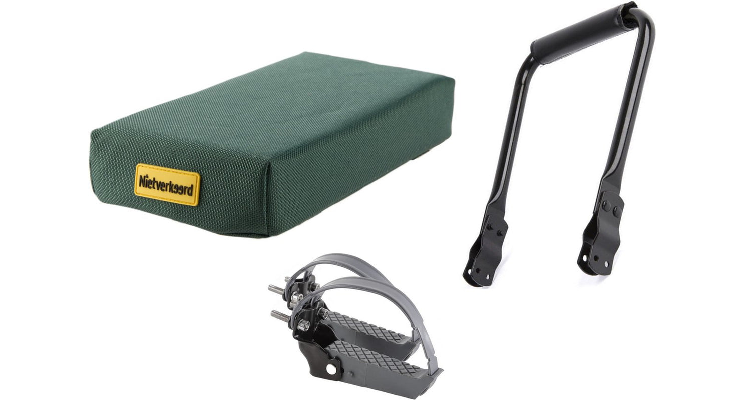 Een unieke deal van Voordeelfiets.nl! Wil je op je fiets een rugsteun, fietskussen en een set met voetsteunen? Bestel dan deze combideal.