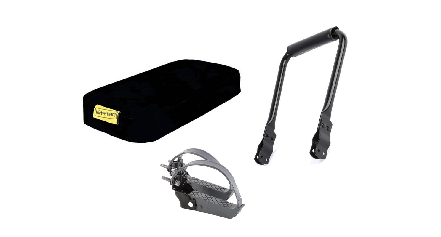 Deze complete set bevat alles wat je nodig hebt voor een zorgeloze fietsrit met je kind achterop. Inbegrepen zijn een Fietskussen Bagagedrager van 32x15x5 cm (LxBxH) voor het comfort van je kleine avonturier, een inklapbare Rugsteun Bagagedrager met een breedte van 13 cm voor extra ondersteuning, en een set Voetsteunen om de rit nog veiliger te maken. En het beste van alles? Al het benodigde bevestigingsmateriaal is inbegrepen, zodat je direct aan de slag kunt.