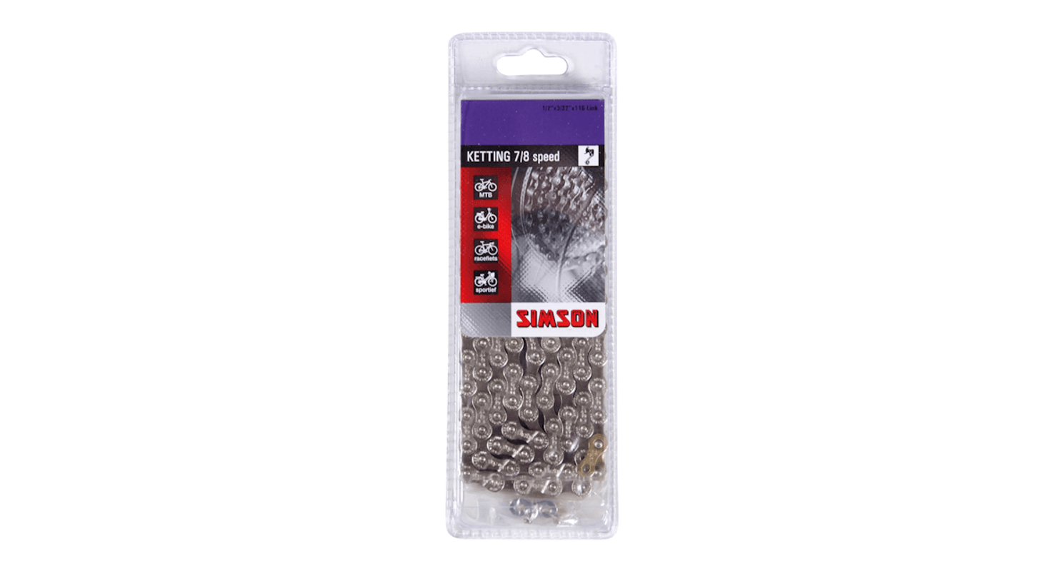 Deze Simson ketting is compatibel met zowel 7-speed als 8-speed derailleur systemen. Dit maakt het een veelzijdige keuze voor fietsers met verschillende soorten fietsen. Of je nu een stadsfiets, mountainbike of touringfiets hebt, de Simson Ketting Derailleur 7/8 is een uitstekende keuze voor het onderhouden of vervangen van je ketting. Het compatibiliteitsbereik biedt veel flexibiliteit voor verschillende fietsmodellen, wat het onderhoud vergemakkelijkt.