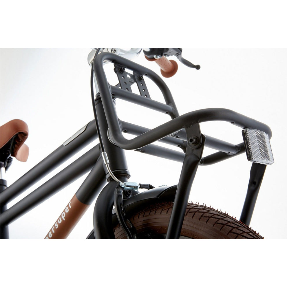 Op zoek naar een stoere jongensfiets die tegen een stootje kan? De Supersuper Cooper Jongensfiets Mat Zwart is precies wat je nodig hebt. Deze fiets combineert een stevig stalen frame met aluminium velgen, waardoor hij niet alleen sterk maar ook licht in gebruik is. Perfect voor jonge fietsers die hun eerste meters maken of al zelfstandig naar school gaan.