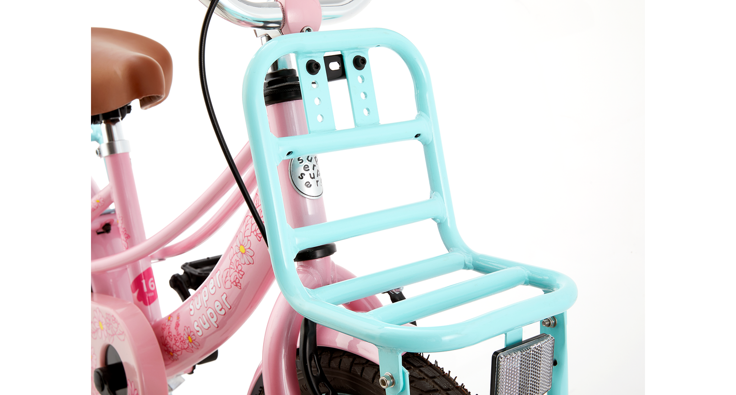 Met de Supersuper Lola 16 inch kies je voor een complete en veilige meisjesfiets die jarenlang meegaat. Dankzij de combinatie van een stevig stalen frame, lichte velgen en betrouwbare remmen leert je kind stap voor stap fietsen met vertrouwen. De verstelbare onderdelen en de handige accessoires maken deze fiets niet alleen praktisch, maar ook leuk in gebruik.