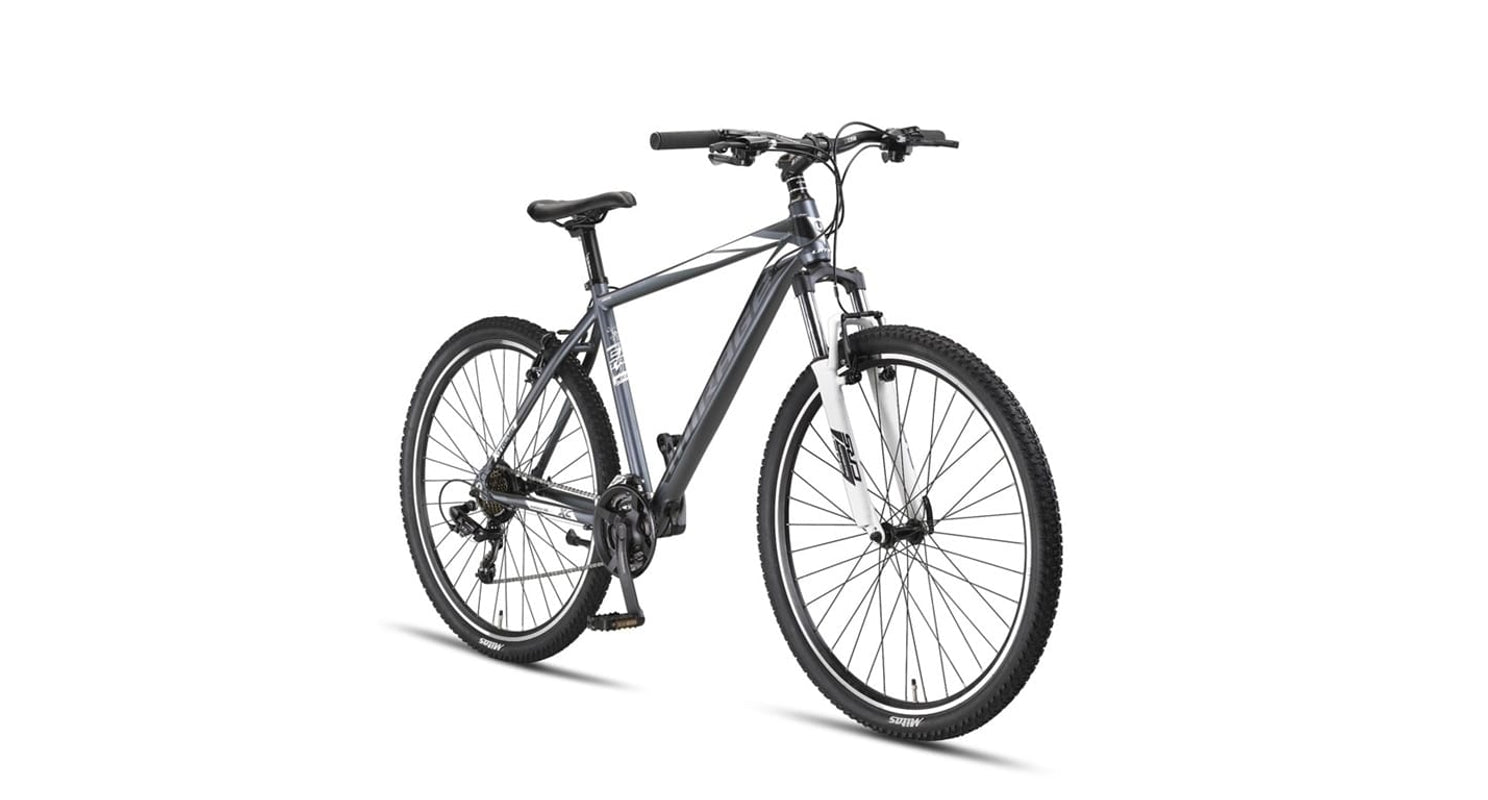 Moeiteloos trotseer jij elk parcours op deze opvallende Umit Mirage 27.5 inch MTB V-Brakes mountainbike. Hij heeft niets teveel en niets te weinig: is perfect uitgerust voor een bewogen ritje. Met 21 versnellingen én je eigen superpowers vergroot je op de Mirage je eigen sportieve prestaties!