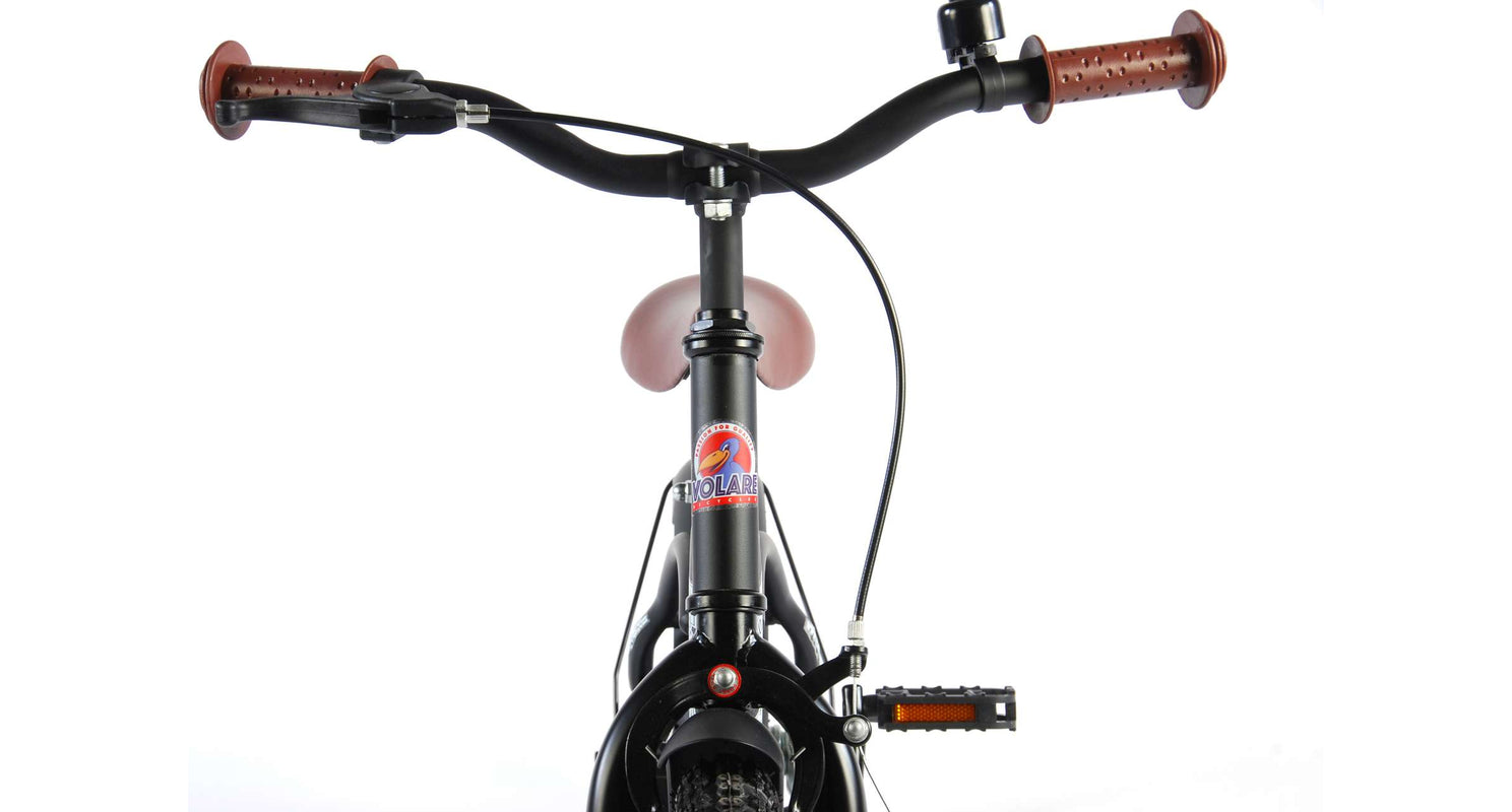 Veiligheid staat voorop! Daarom heeft deze gave fiets een handrem en een terugtraprem, een gesloten kettingkast en afneembare zijwieltjes. Daarnaast heeft de fiets een leuke bel. Ook aan het comfort is gedacht. De mooie zwarte Volare fiets met bruine accenten heeft een zacht zadel, een tijdloos design, en een uniek frame dat wel tegen een stootje kan. Om zo lang mogelijk van de fiets te kunnen genieten zijn het zadel en stuur in hoogte verstelbaar. Kortom: een topkwaliteit fiets waar uw kind nog jaren van kan genieten!