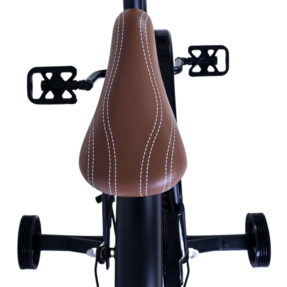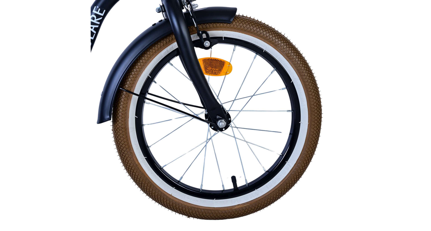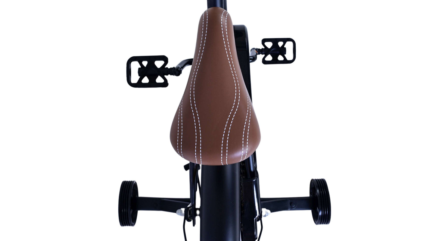 Veiligheid staat voorop! Daarom heeft deze gave fiets een handrem en een terugtraprem, een gesloten kettingkast en afneembare zijwieltjes. Daarnaast heeft de fiets een leuke bel. Ook aan het comfort is gedacht. De mooie zwarte Volare fiets met bruine accenten heeft een zacht zadel, een tijdloos design, en een uniek frame dat wel tegen een stootje kan. Om zo lang mogelijk van de fiets te kunnen genieten zijn het zadel en stuur in hoogte verstelbaar.