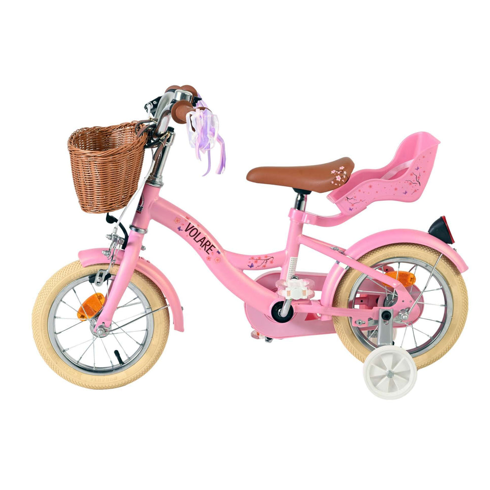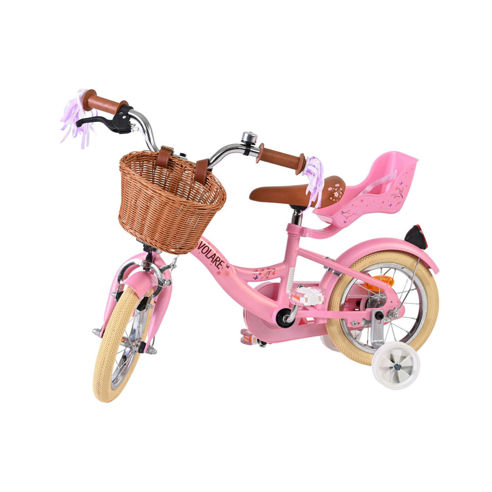 Veiligheid staat voorop! Daarom heeft deze gave fiets een handrem en terugtraprem, afneembare zijwieltjes en een gesloten kettingkast. De fiets heeft reflectoren van voor, achter en in de wielen. Ook aan het comfort is gedacht. Deze mooie Volare fiets heeft een comfortabel zacht zadel, een poppenzitje, een handig rieten mandje en vrolijke handvatstreamers op de fiets op te fleuren Om zo lang mogelijk van de fiets te kunnen genieten zijn het zadel en stuur in hoogte verstelbaar. Wordt geleverd inclusief al het montagemateriaal dat nodig is om de fiets in elkaar te zetten!