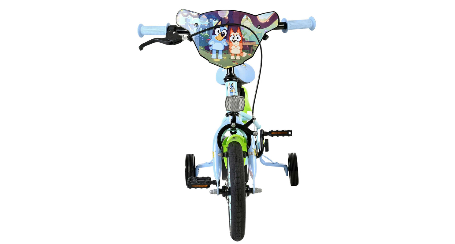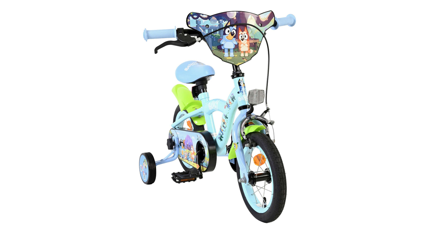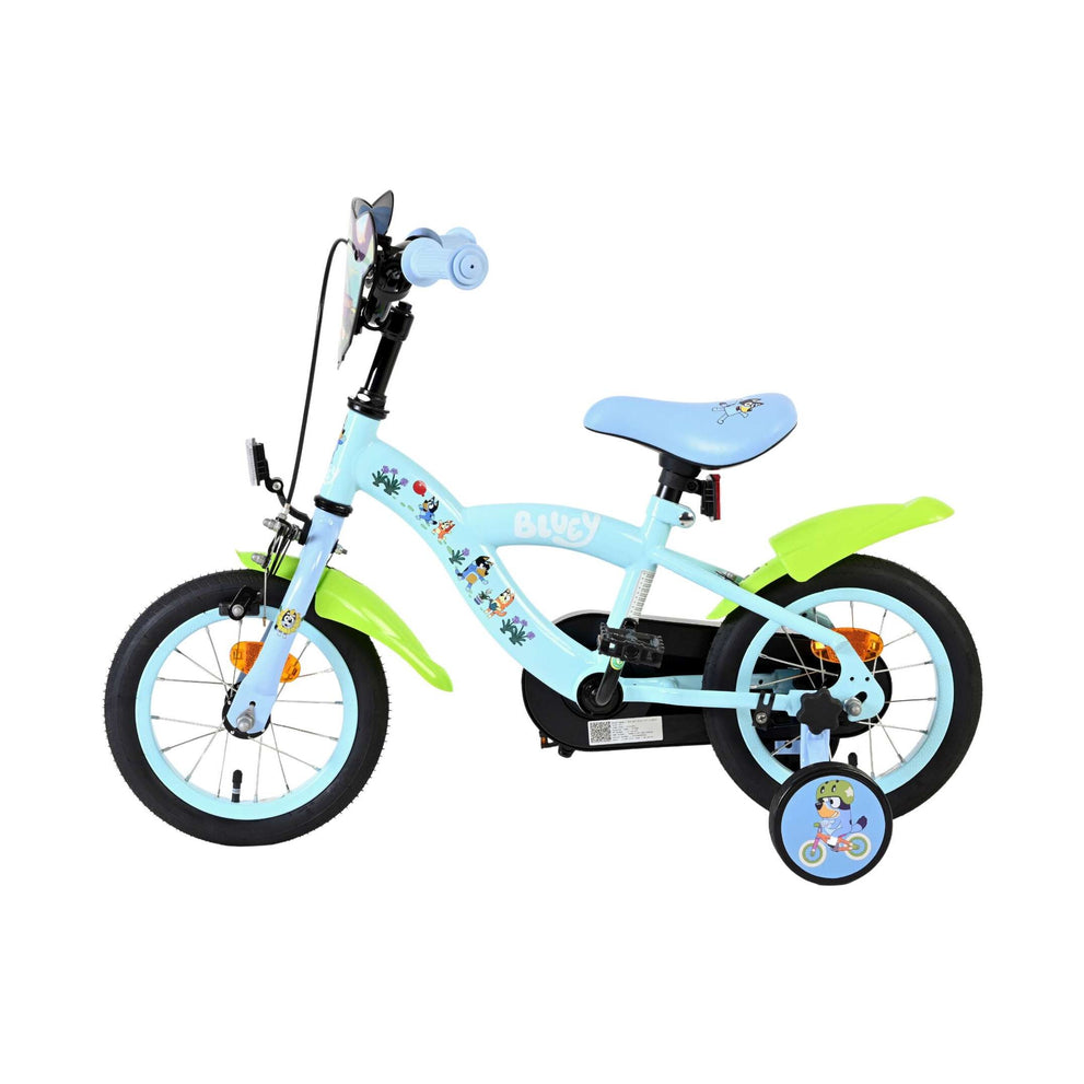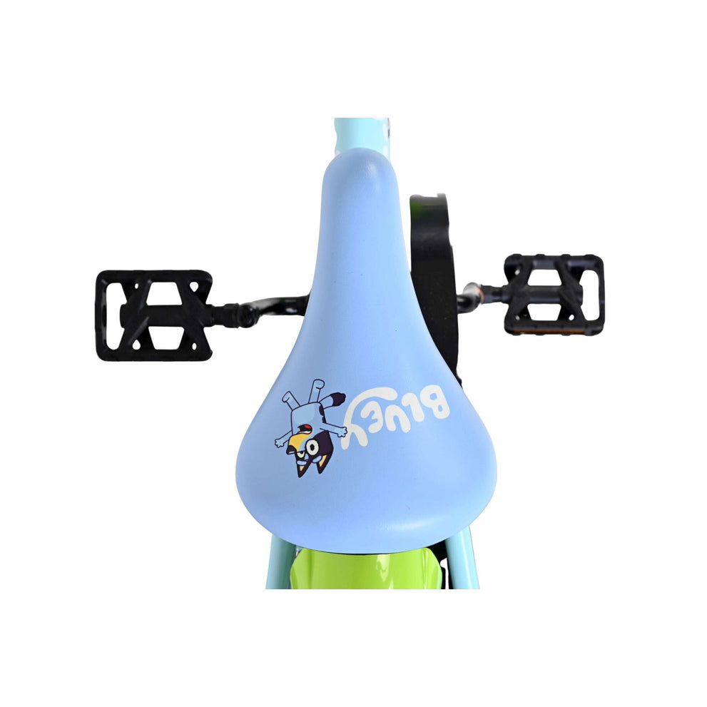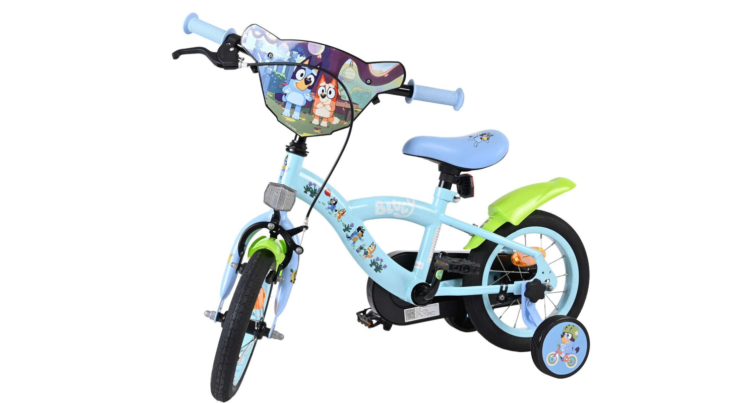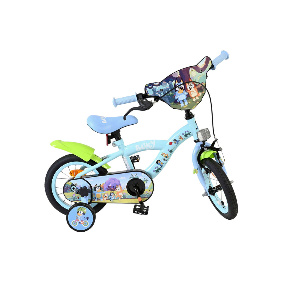 Stap op en beleef de leukste avonturen met de Volare Bluey 12 inch kinderfiets! Deze prachtige lichtblauwe fiets is speciaal ontworpen voor jonge Bluey-fans en combineert veiligheid, comfort én vrolijk design. Overal op de fiets vind je vrolijke afbeeldingen van Bluey, met als blikvanger het voorplaatje op het stuur dat meteen de aandacht trekt.