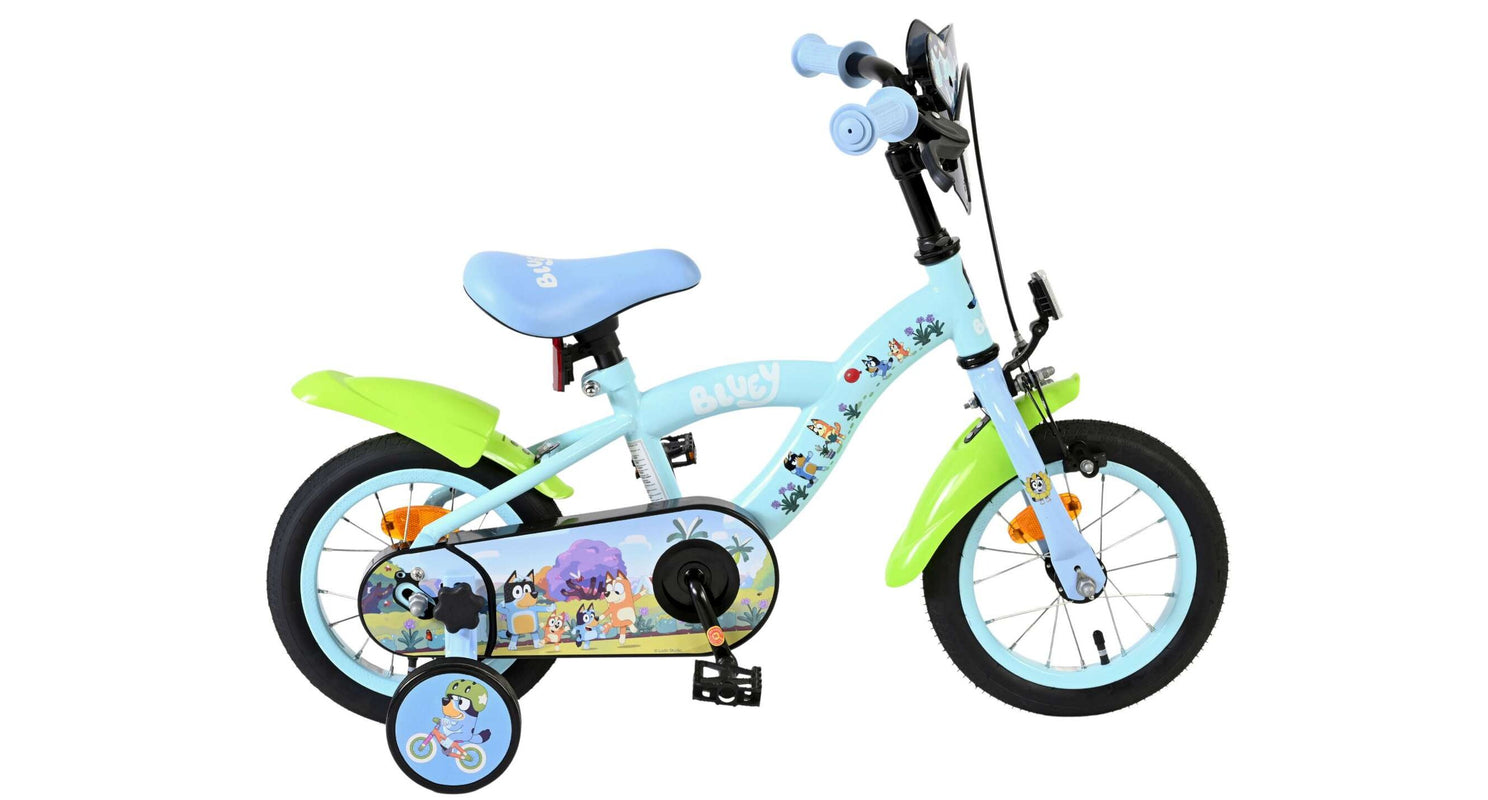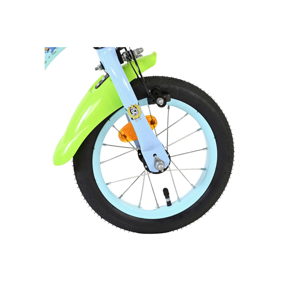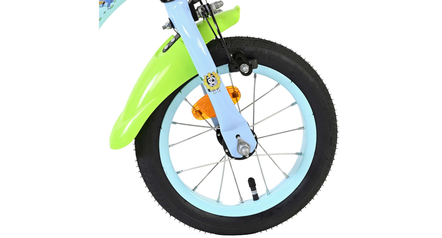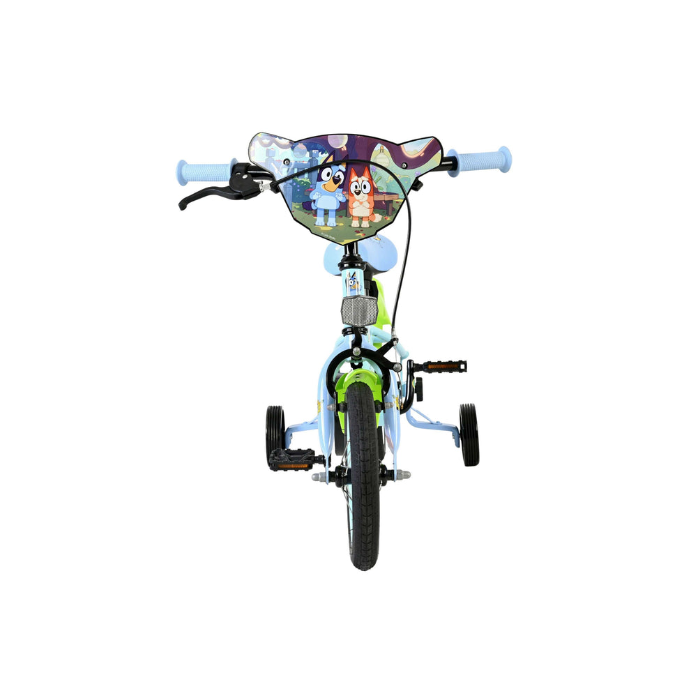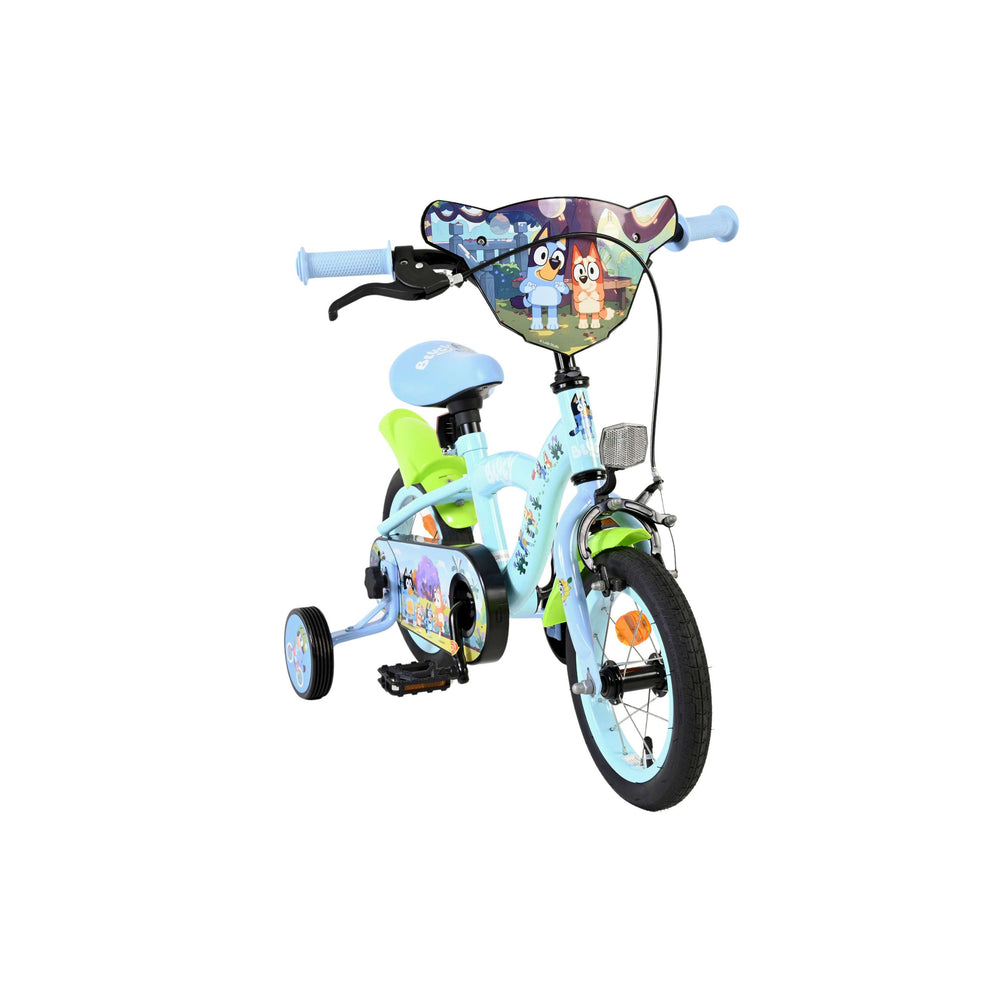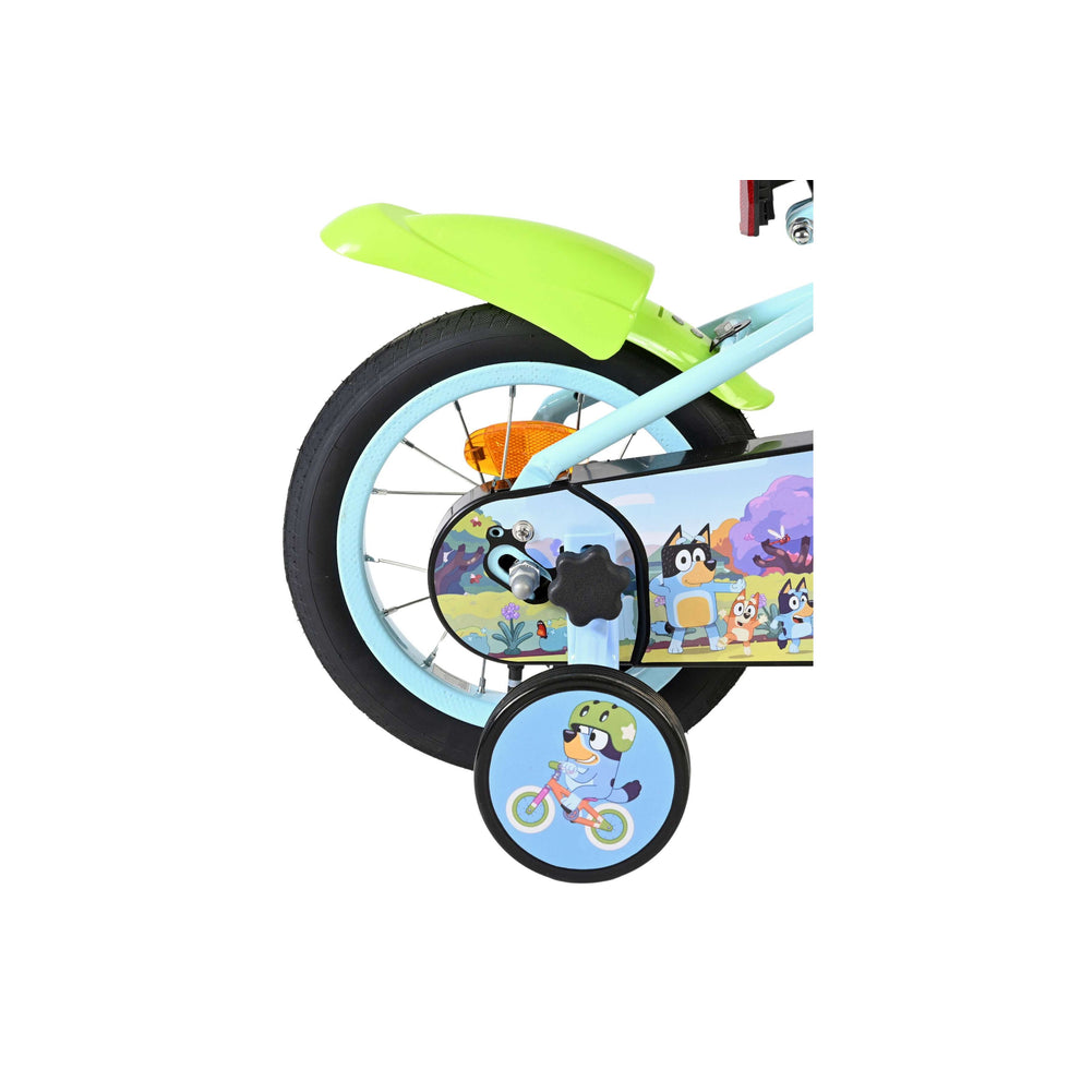 Stap op en beleef de leukste avonturen met de Volare Bluey 12 inch kinderfiets! Deze prachtige lichtblauwe fiets is speciaal ontworpen voor jonge Bluey-fans en combineert veiligheid, comfort én vrolijk design. Overal op de fiets vind je vrolijke afbeeldingen van Bluey, met als blikvanger het voorplaatje op het stuur dat meteen de aandacht trekt.