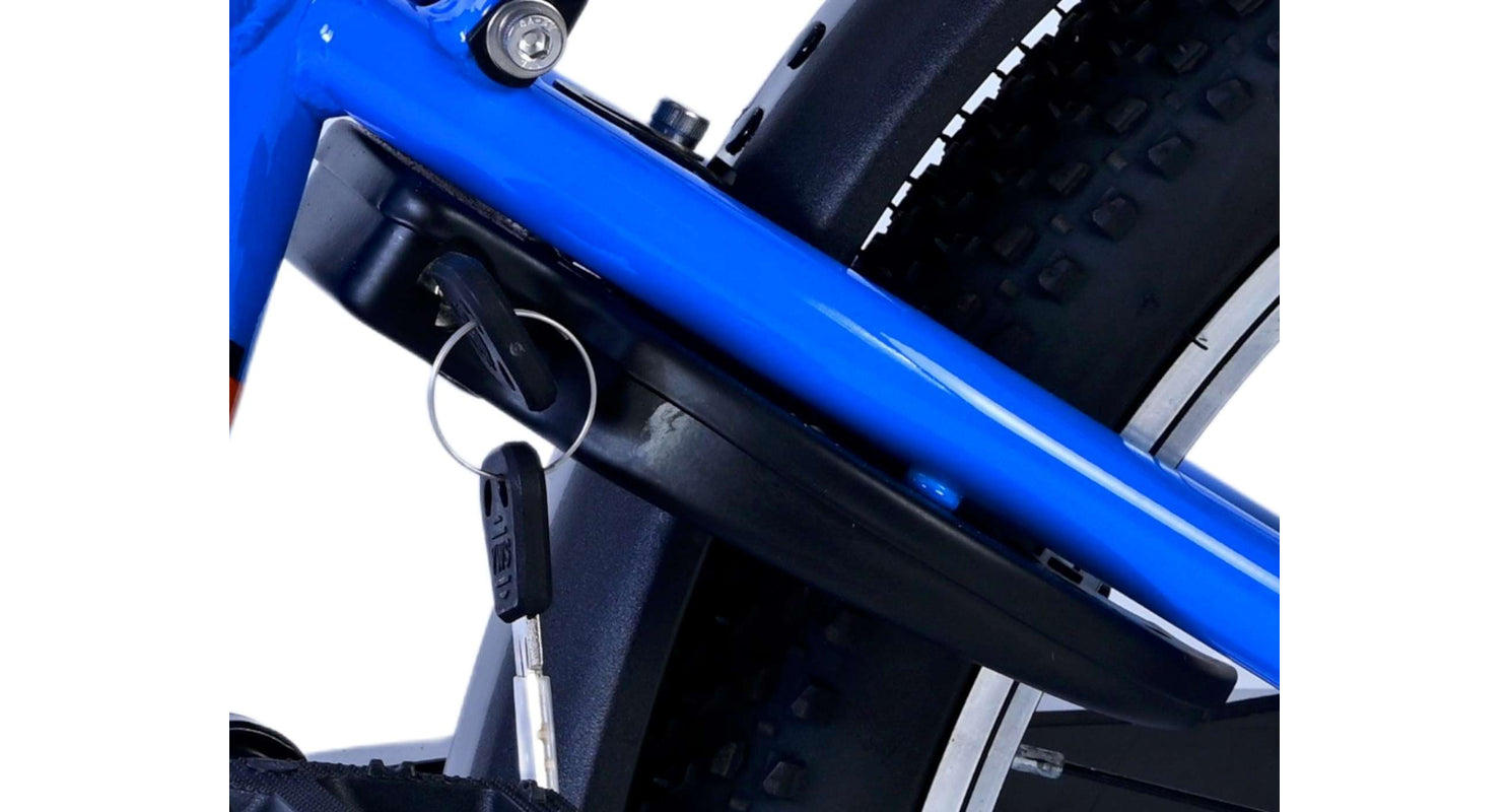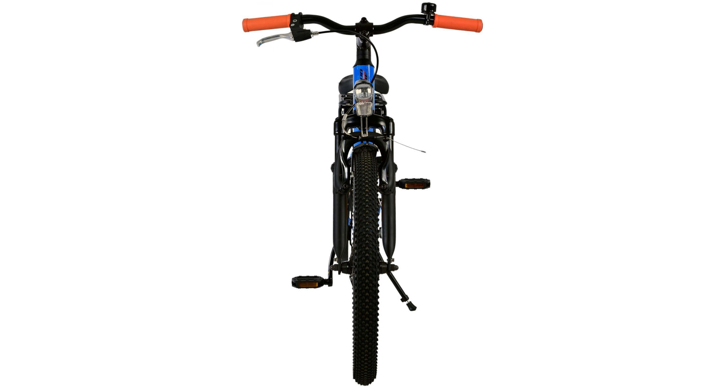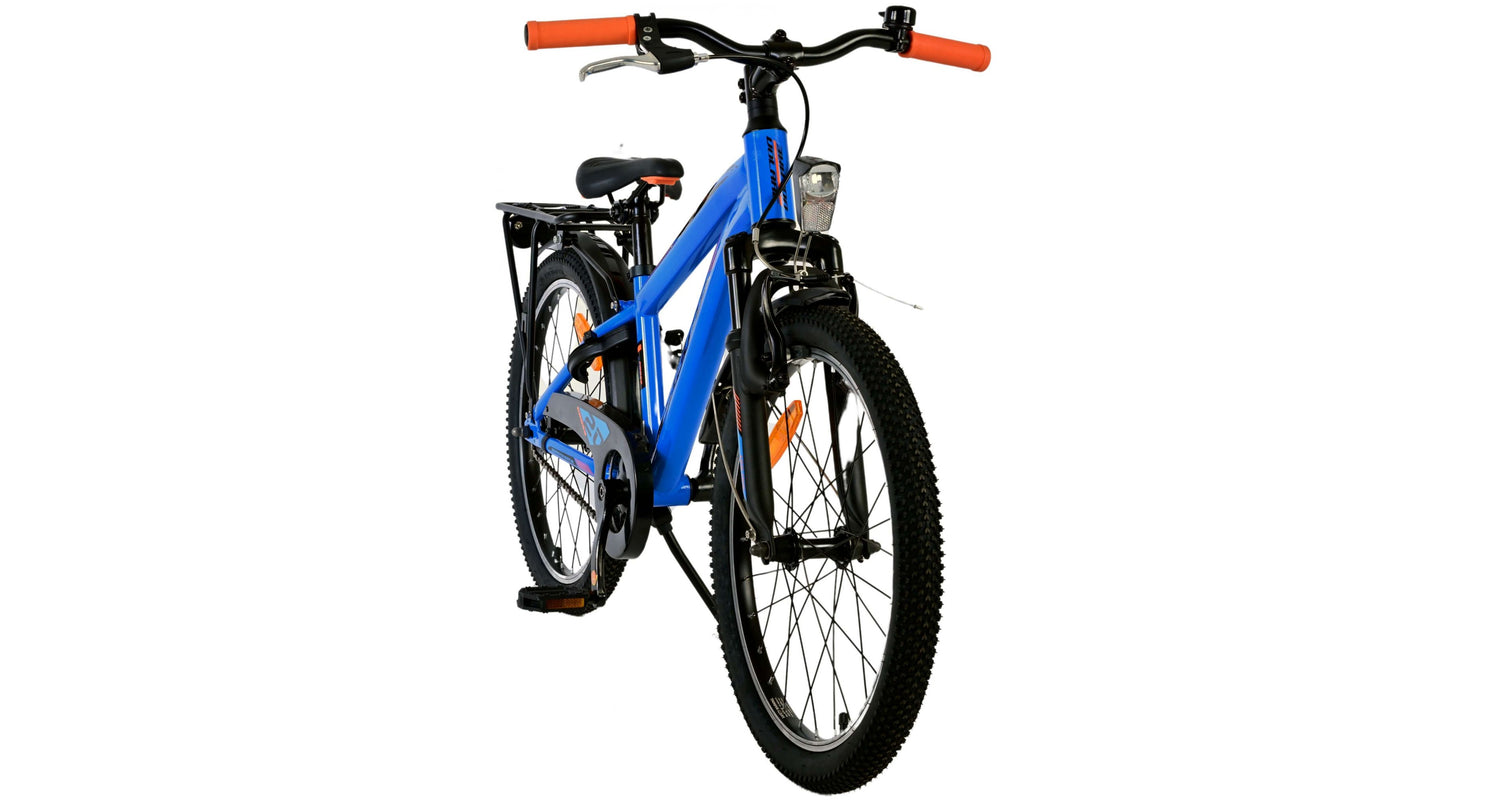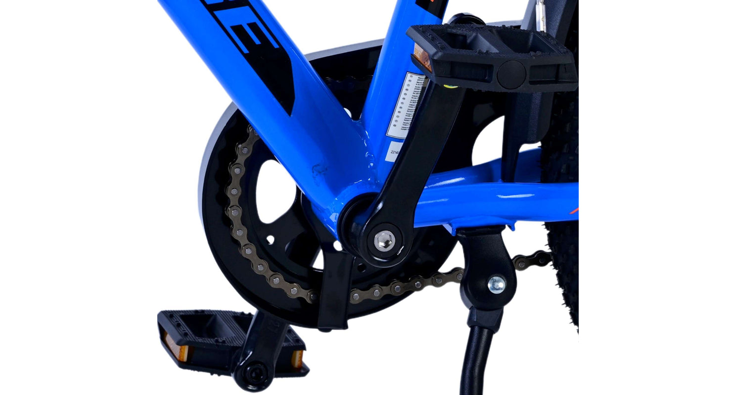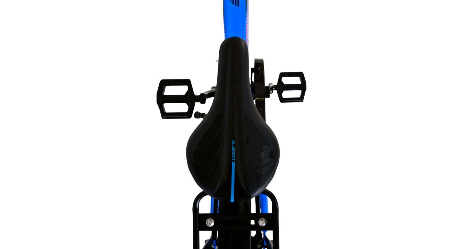 Veiligheid staat voorop! Daarom heeft deze gave fiets een handrem en terugtraprem, reflectoren in de wielen en verlichting op batterij voor en achter. Ook aan het comfort is gedacht. De mooie donkerblauwe Volare fiets heeft een handige achterdrager om moeiteloos al je spullen mee te nemen, een comfortabel zacht zadel, een standaard zodat je fiets altijd netjes blijft staan en een stevig slot. Om zo lang mogelijk van de fiets te kunnen genieten heeft deze een extra lange zadelpen waardoor de fiets nóg langer met het kind meegroeit. Let op, het stuur is niet in hoogte verstelbaar!