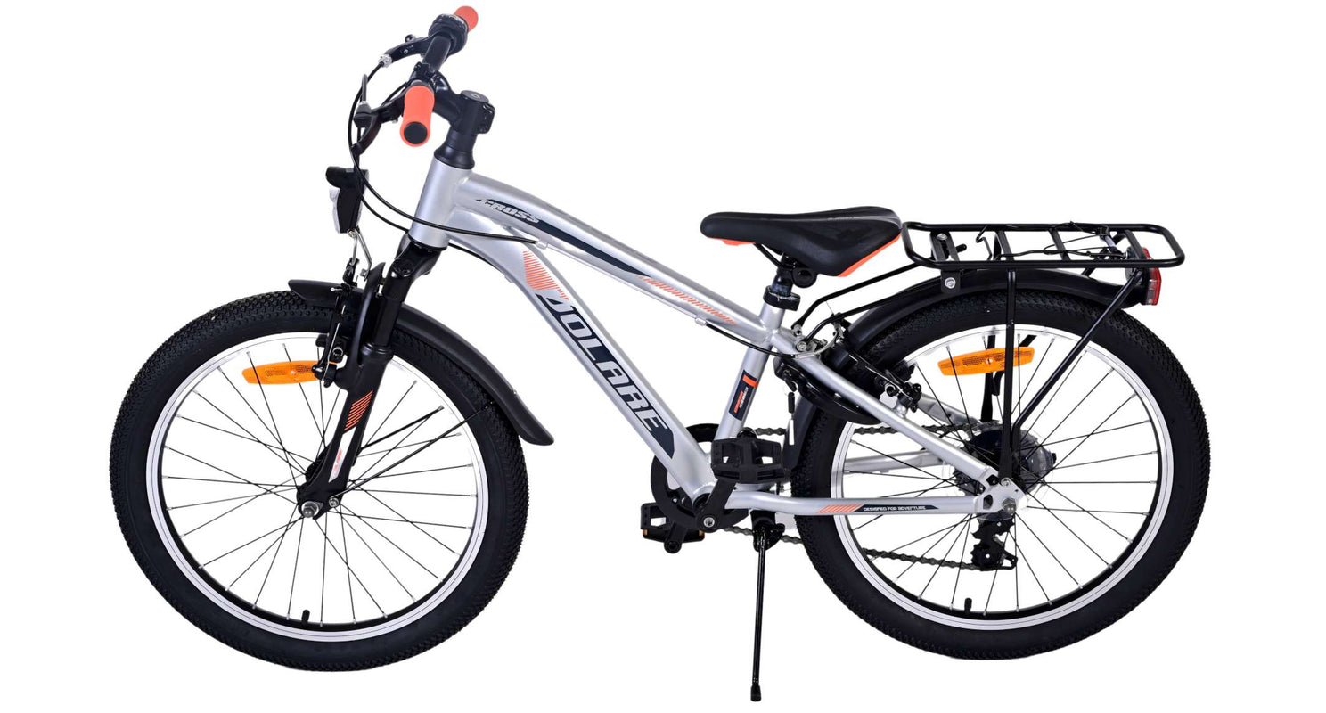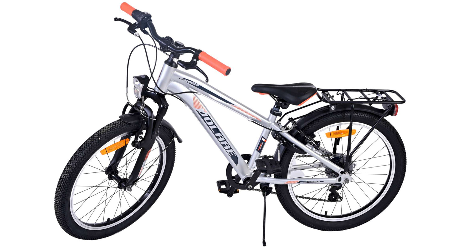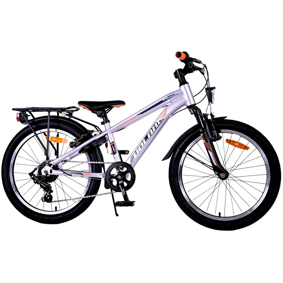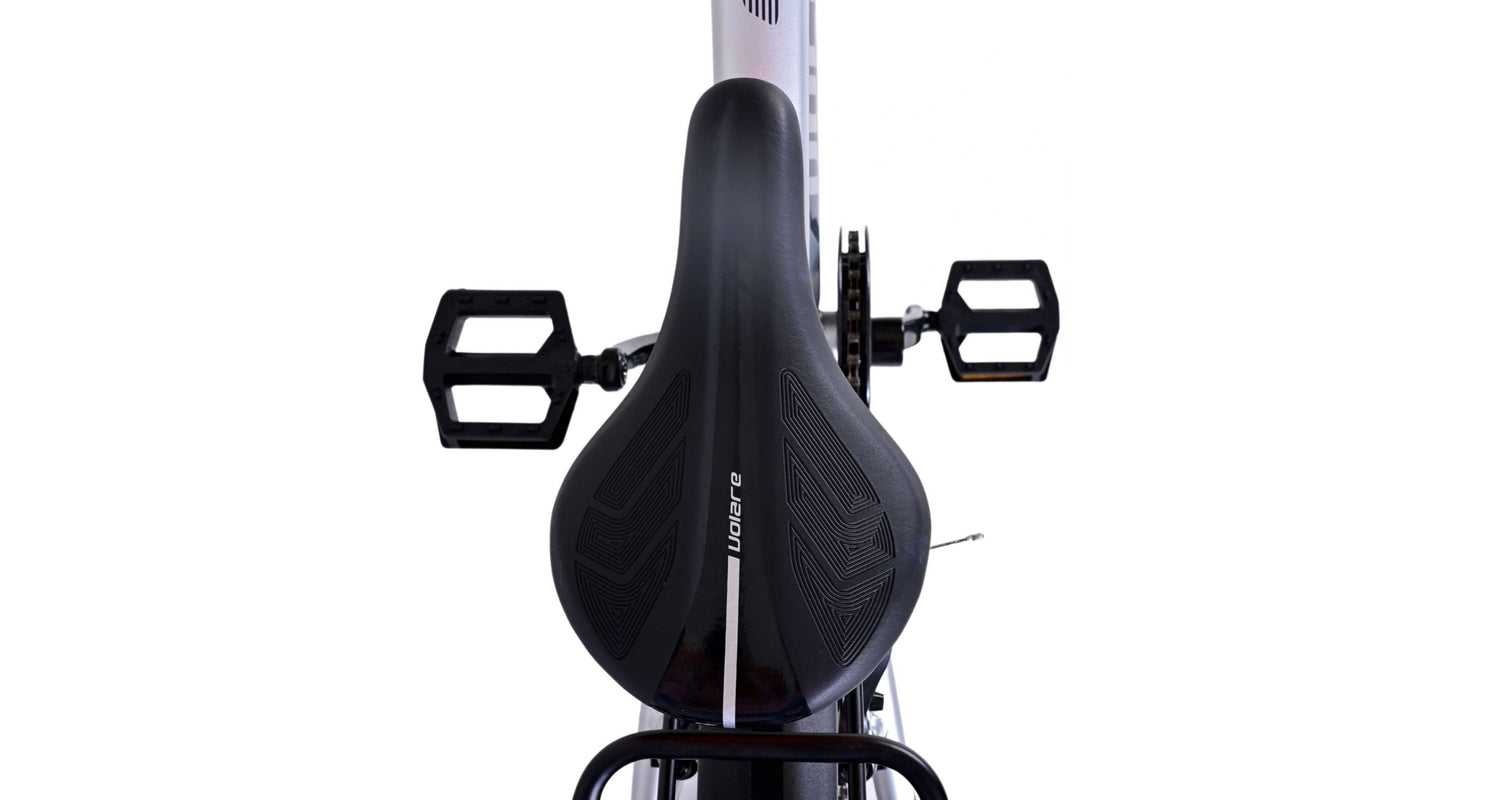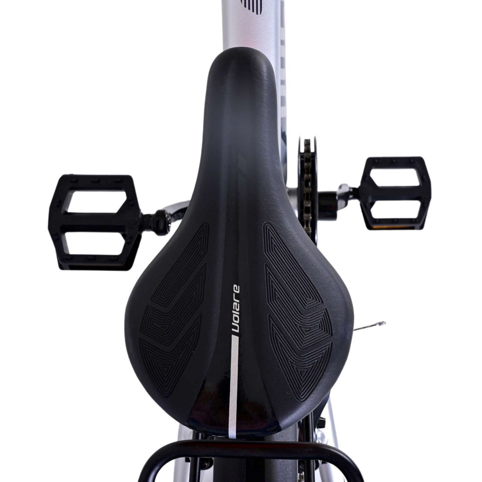 Veiligheid staat voorop! Daarom heeft deze gave fiets geen terugtraprem maar twee handremmen, 6 versnellingen, reflectoren in de wielen en verlichting op batterij voor en achter. Ook aan het comfort is gedacht. De mooie zilveren Volare fiets heeft een handige achterdrager om moeiteloos al je spullen mee te nemen, een comfortabel zacht zadel, een standaard zodat je fiets altijd netjes blijft staan en een stevig slot. Om zo lang mogelijk van de fiets te kunnen genieten heeft deze een extra lange zadelpen waardoor de fiets langer met het kind meegroeit. Let op, het stuur is niet in hoogte verstelbaar!