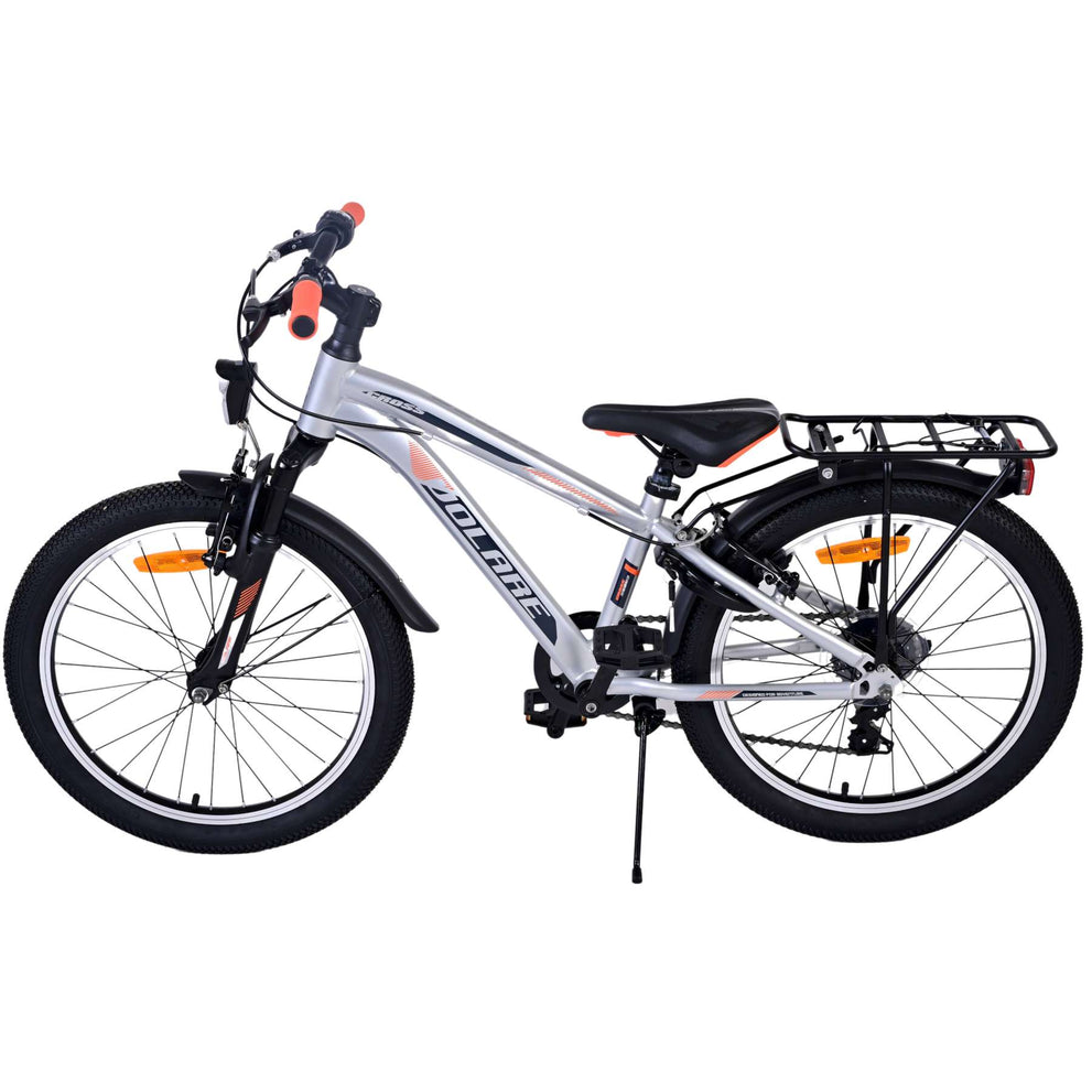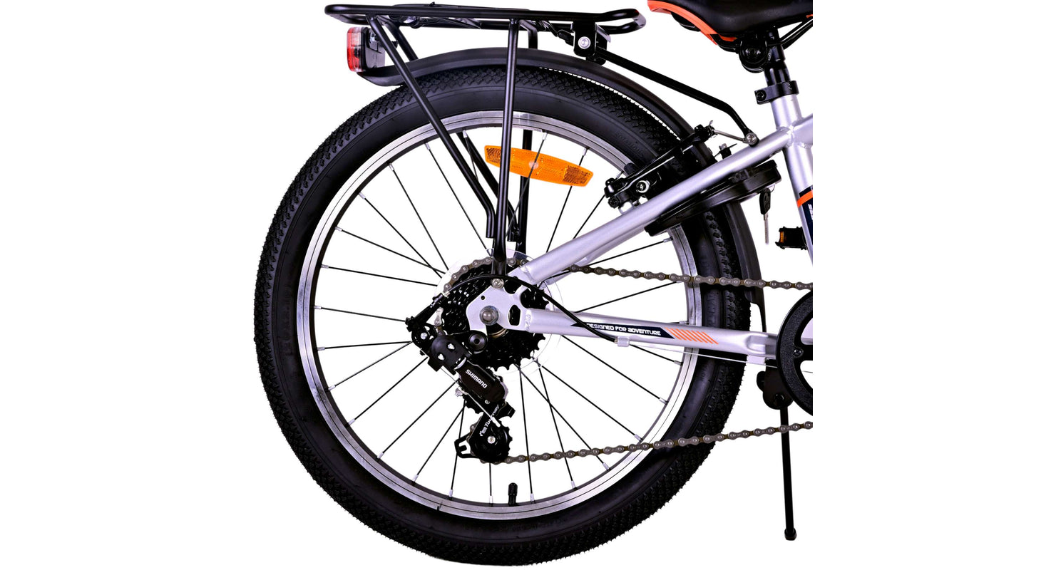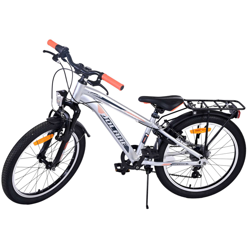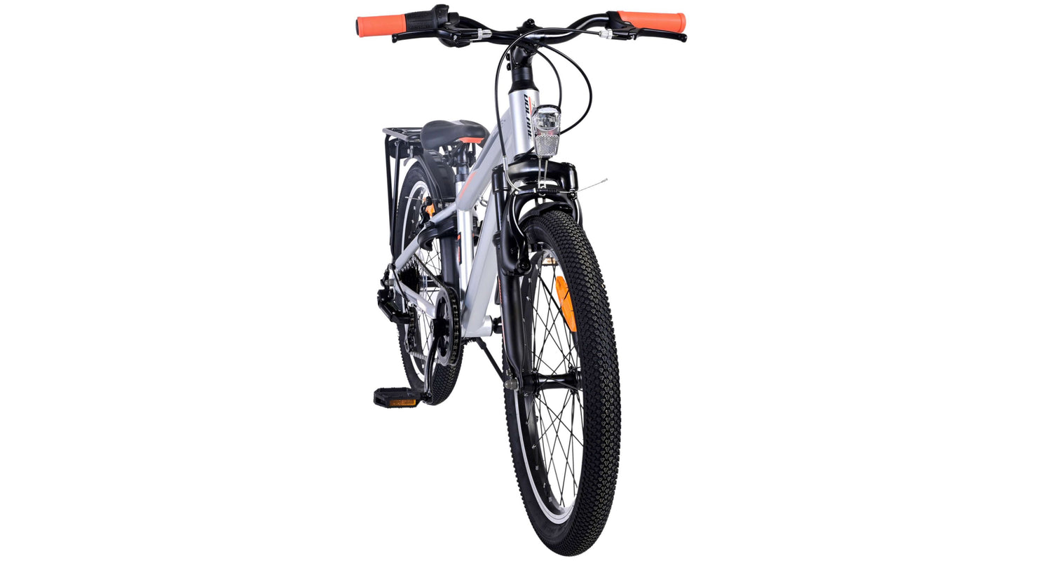Veiligheid staat voorop! Daarom heeft deze gave fiets geen terugtraprem maar twee handremmen, 6 versnellingen, reflectoren in de wielen en verlichting op batterij voor en achter. Ook aan het comfort is gedacht. De mooie zilveren Volare fiets heeft een handige achterdrager om moeiteloos al je spullen mee te nemen, een comfortabel zacht zadel, een standaard zodat je fiets altijd netjes blijft staan en een stevig slot. Om zo lang mogelijk van de fiets te kunnen genieten heeft deze een extra lange zadelpen waardoor de fiets langer met het kind meegroeit. Let op, het stuur is niet in hoogte verstelbaar!