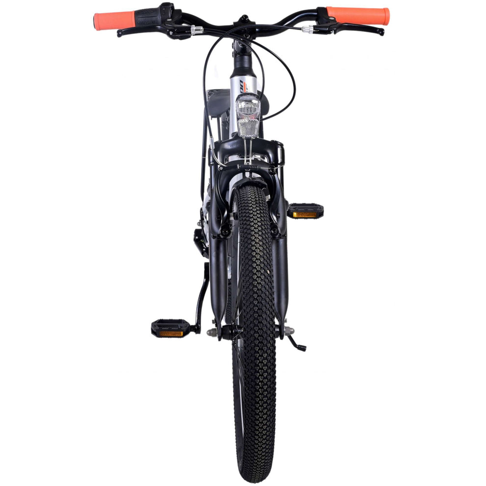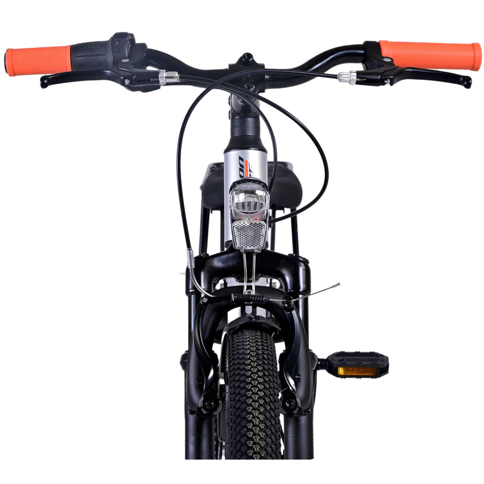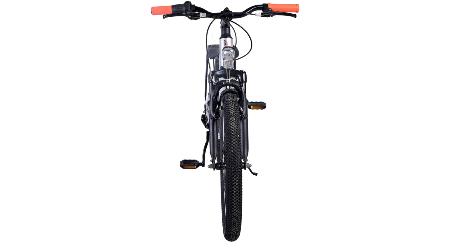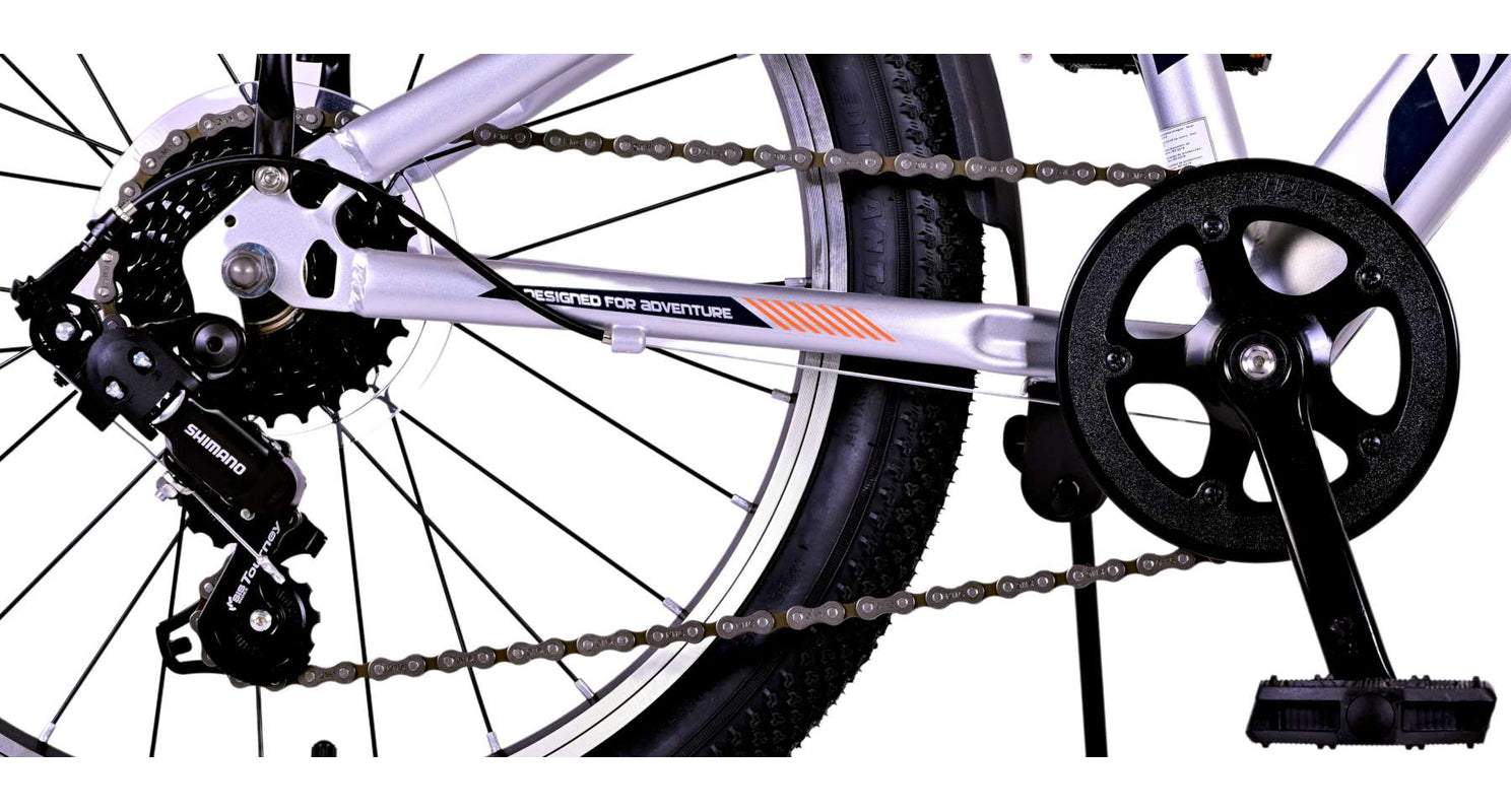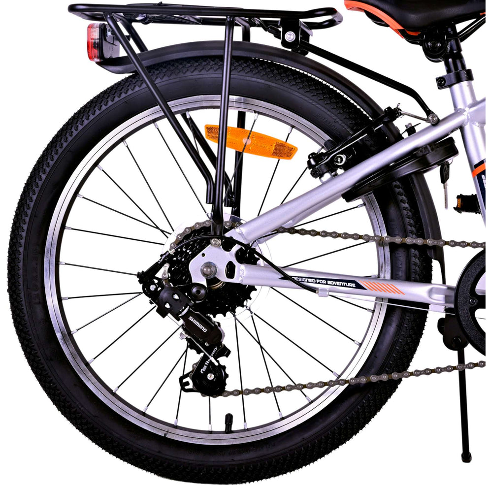 Veiligheid staat voorop! Daarom heeft deze gave fiets geen terugtraprem maar twee handremmen, 6 versnellingen, reflectoren in de wielen en verlichting op batterij voor en achter. Ook aan het comfort is gedacht. De mooie zilveren Volare fiets heeft een handige achterdrager om moeiteloos al je spullen mee te nemen, een comfortabel zacht zadel, een standaard zodat je fiets altijd netjes blijft staan en een stevig slot. Om zo lang mogelijk van de fiets te kunnen genieten heeft deze een extra lange zadelpen waardoor de fiets langer met het kind meegroeit. Let op, het stuur is niet in hoogte verstelbaar!