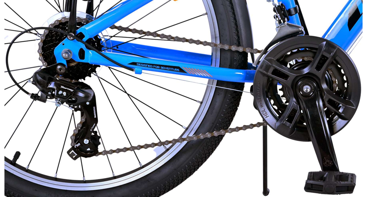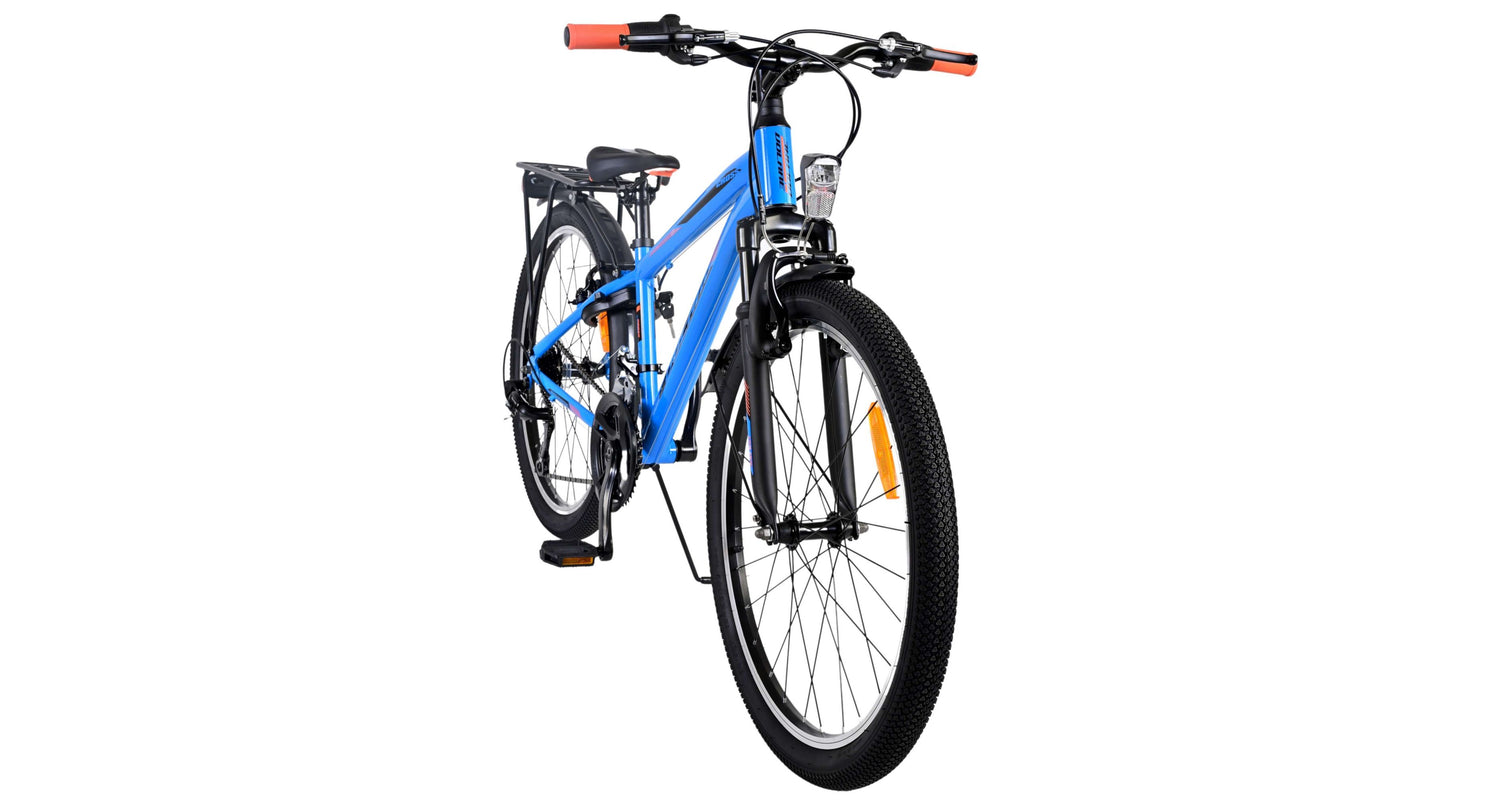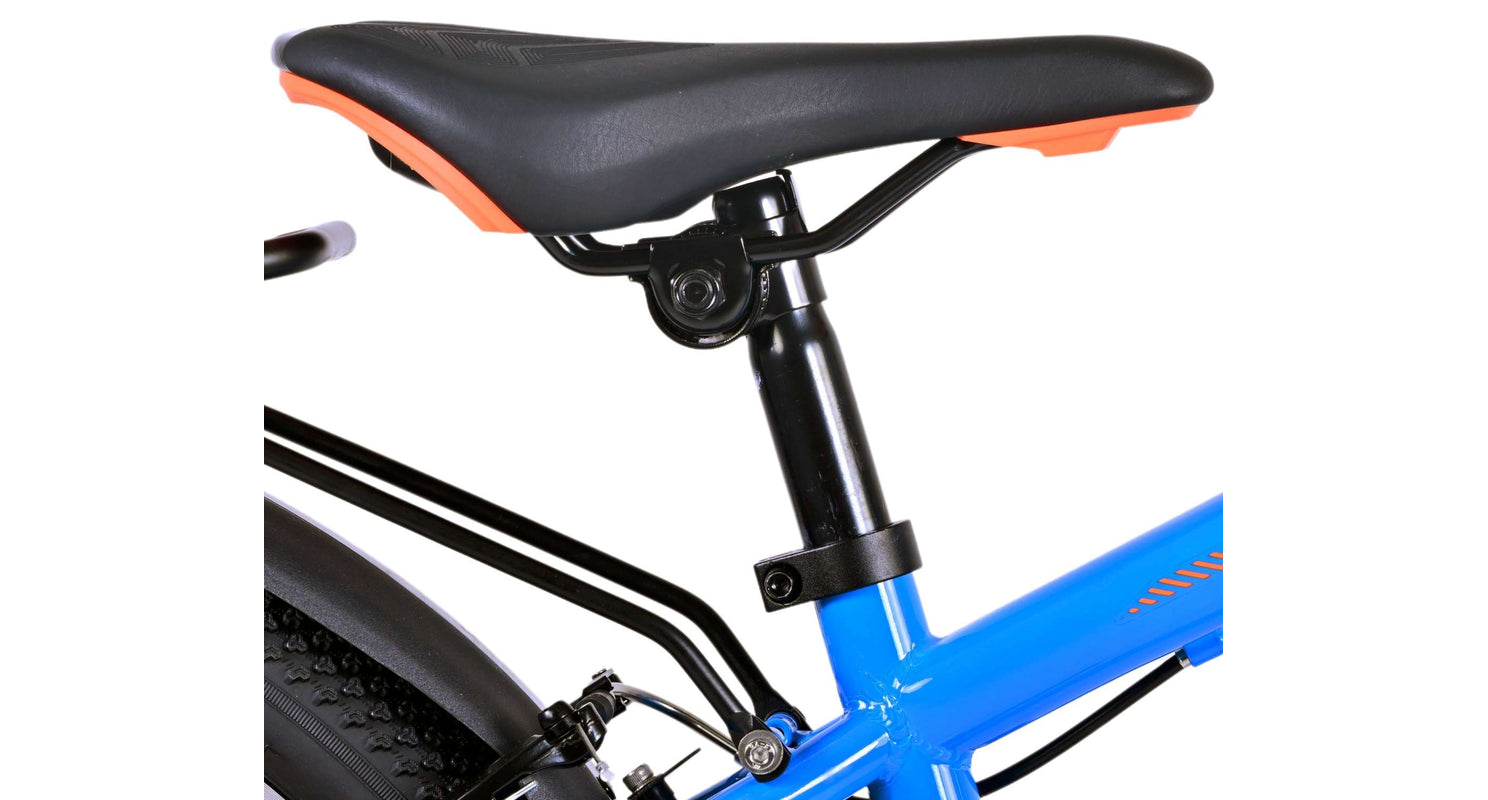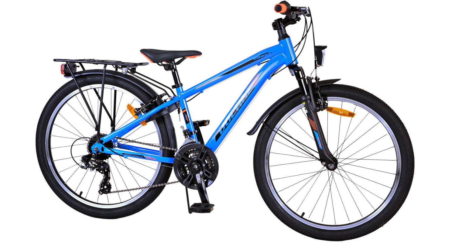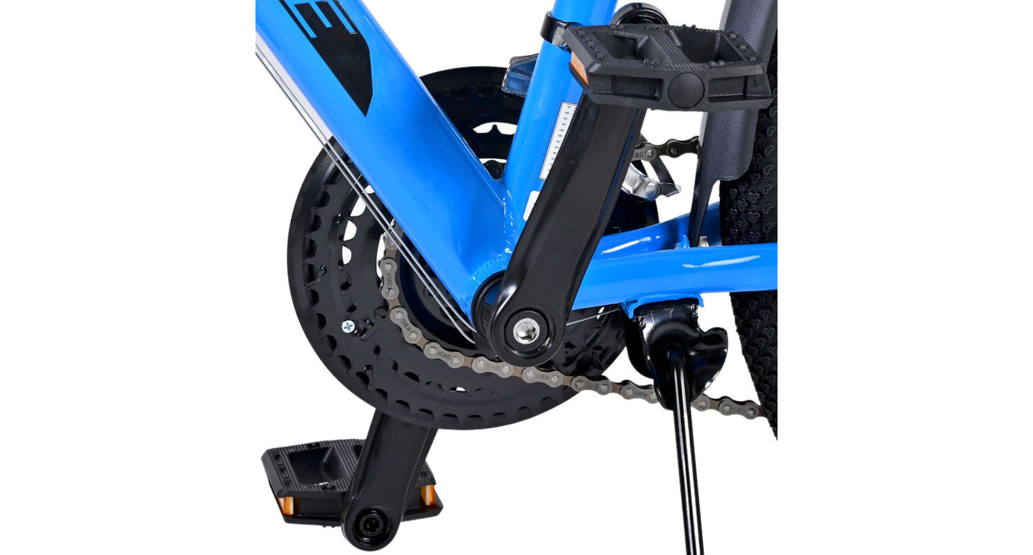 Veiligheid staat voorop! Daarom heeft deze gave fiets geen terugtraprem maar twee handremmen, 21 versnellingen, reflectoren in de wielen en verlichting op batterij voor en achter. Ook aan het comfort is gedacht. De mooie donkerblauwe Volare fiets heeft een handige achterdrager om moeiteloos al je spullen mee te nemen, een comfortabel zacht zadel, een standaard zodat je fiets altijd netjes blijft staan en een stevig slot. Om zo lang mogelijk van de fiets te kunnen genieten heeft deze een extra lange zadelpen waardoor de fiets nóg langer met het kind meegroeit. Let op, het stuur is niet in hoogte verstelbaar!